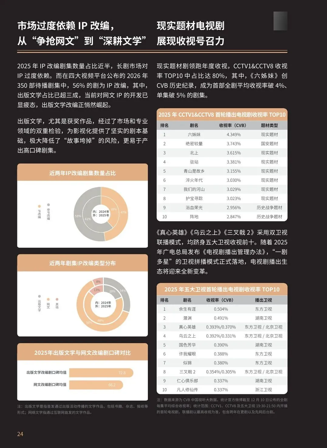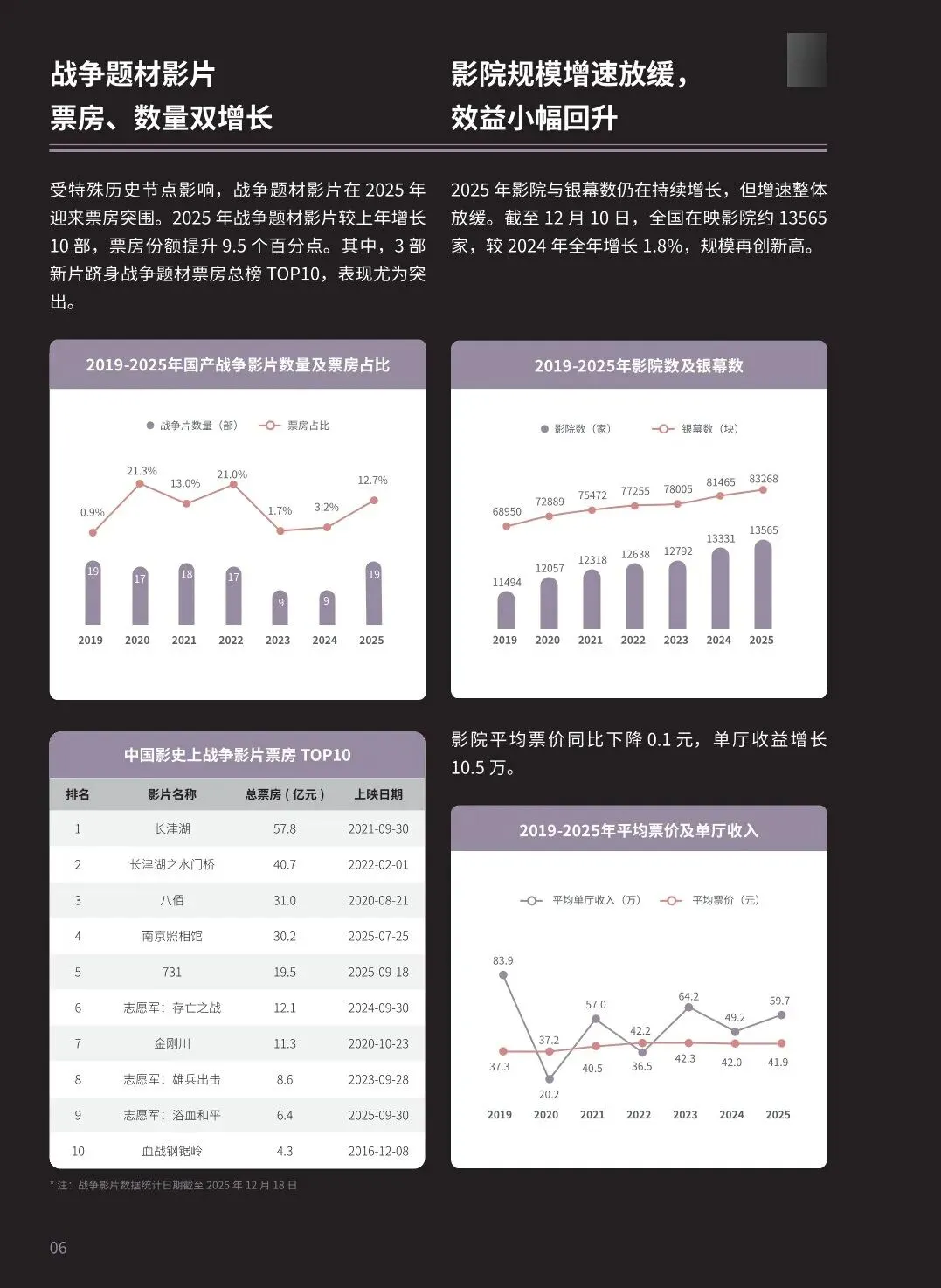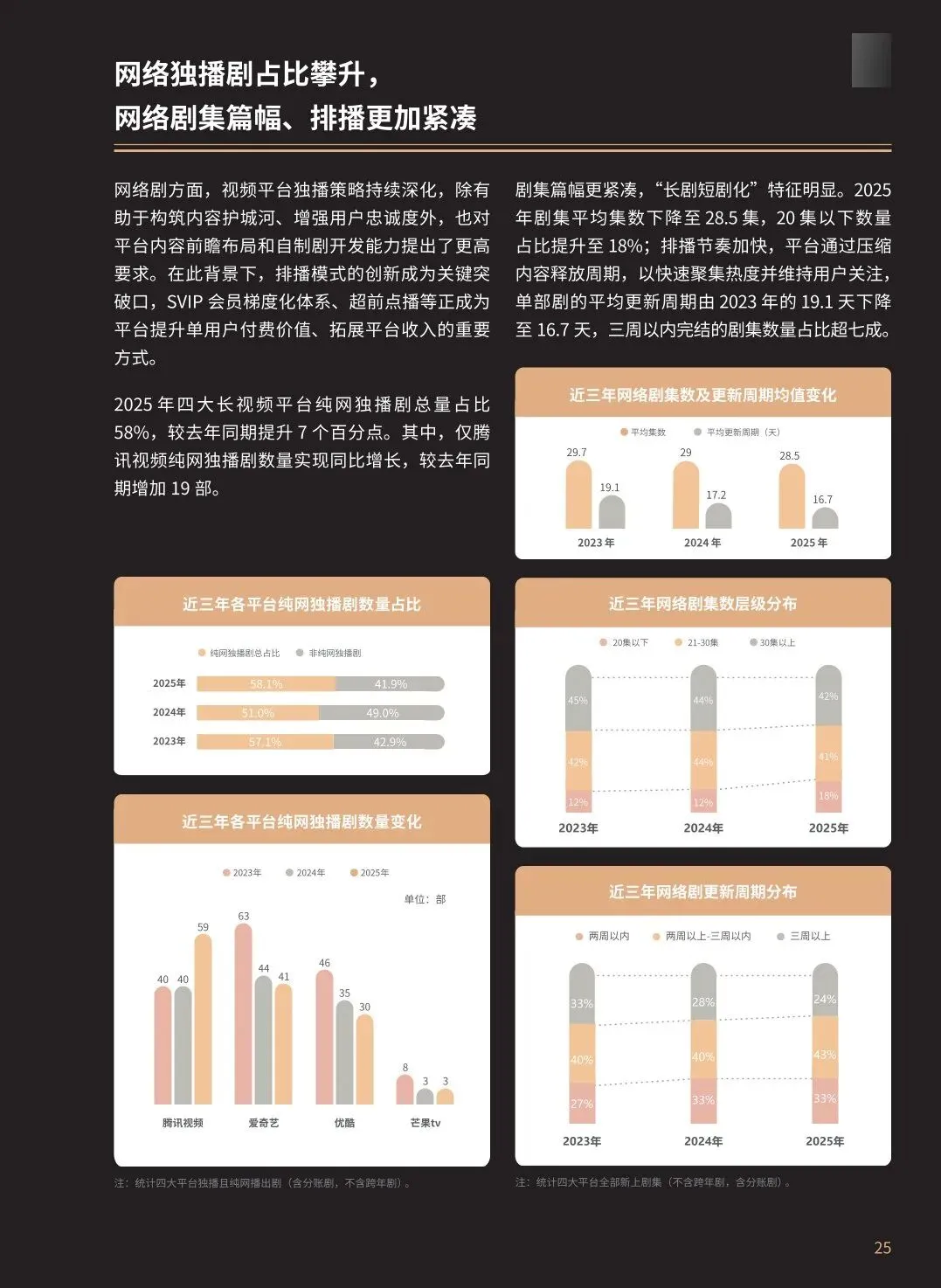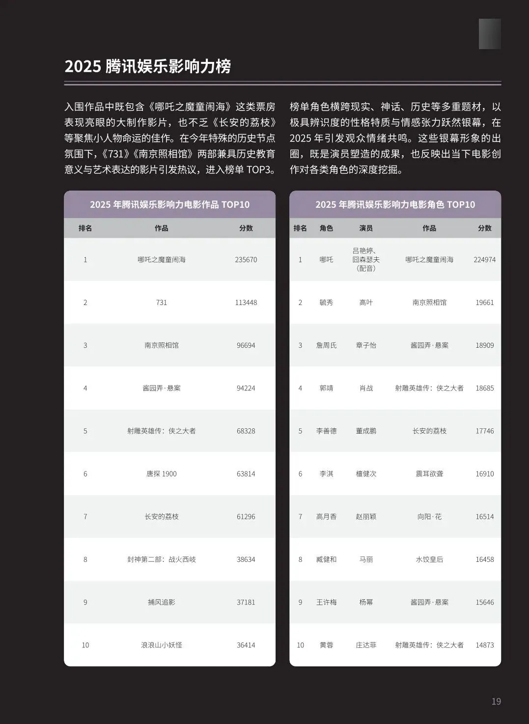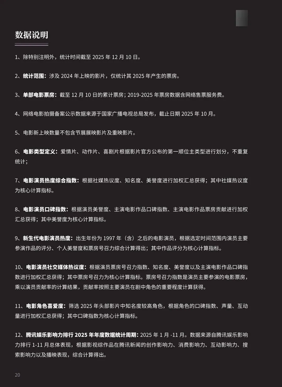 2025 年娱乐行业呈现多元分化与结构性升级特征,电影市场总票房达 518.3 亿元,《哪吒之魔童闹海》以 154.5 亿元刷新影史纪录,动画与战争题材成为核心驱动力,但供给端备案与过审数量双降,腰部影片失血导致结构失衡。剧集市场长剧供给收缩,高口碑作品占比下滑,古装剧仍是基本盘但热度回落,微短剧则迎来爆发式增长,市场规模预计达 634.3 亿元,用户日均观看时长追平即时通讯,横屏短剧向长剧质感靠拢,竖屏短剧进入免费时代。综艺市场数量小幅下降但头部效应凸显,综 N 代占据热度与口碑榜主导,女性议题、海外录制成为创新亮点,户外游戏与喜剧综艺招商表现强劲。