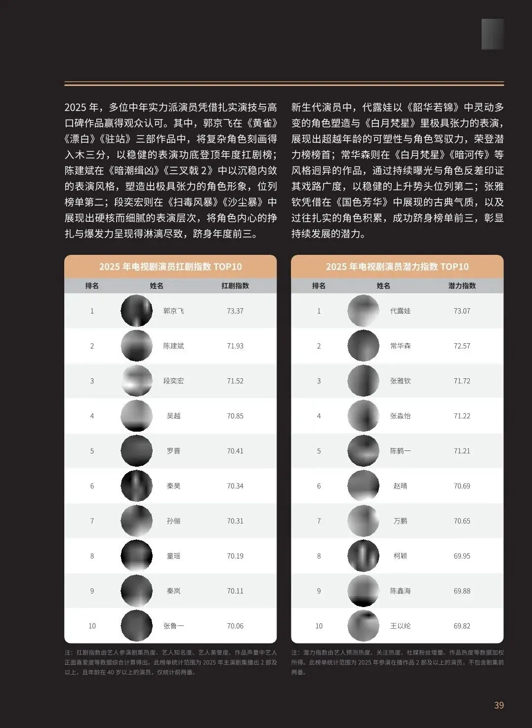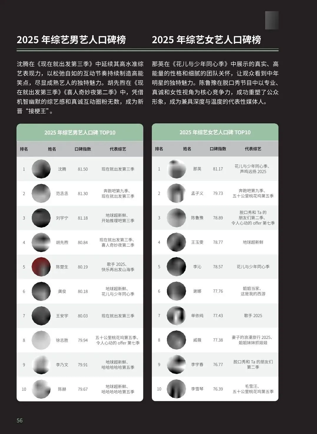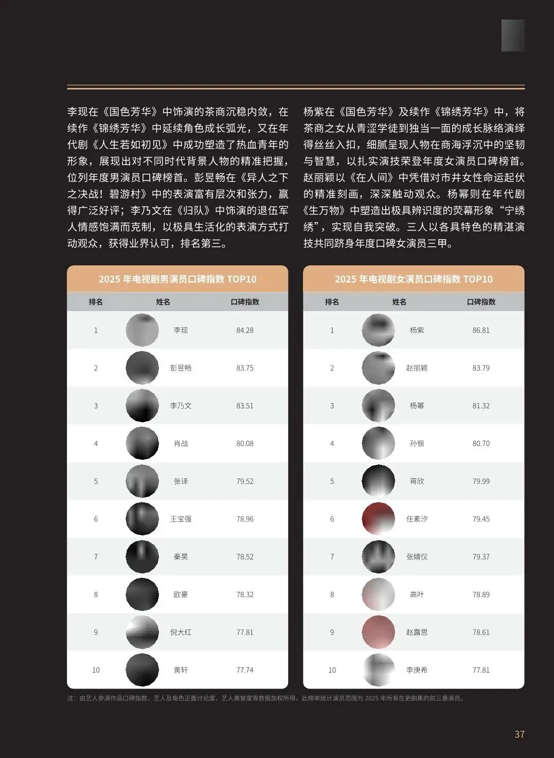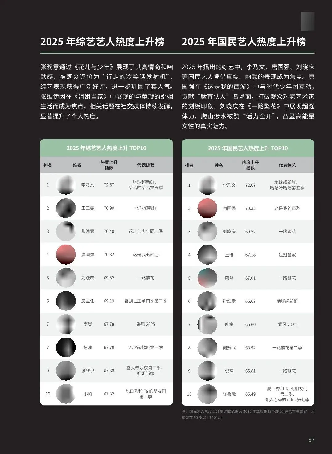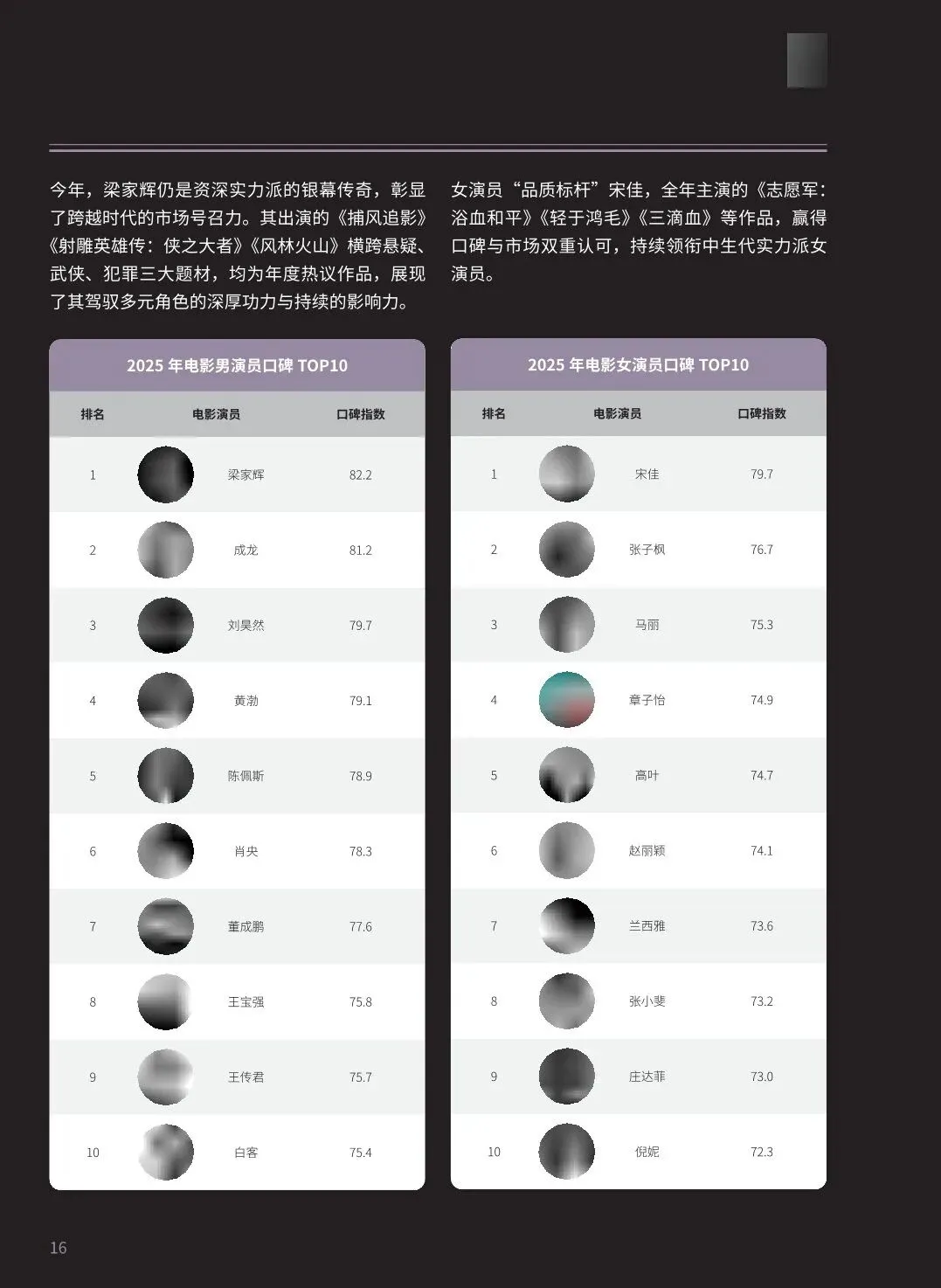 明星生态呈现多重变革,流量演员加速向实力派转型,杨幂、赵丽颖等通过现实主义题材与年代剧实现口碑突破,中年实力派与新生代演员各有亮点。中腰部明星 “网红化” 生存成为常态,通过短视频平台高频互动圈粉;60 岁以上艺人价值重估,女性艺人通过综艺、短剧多元激活热度,男性艺人则多聚焦传统影视领域。明星公益从 “一次性” 转向 “专题化”,肖战、王一博等持续深耕公益获得高关注度,而负面舆情成为明星热度下滑的主要诱因,流量价值退潮导致艺人生命周期缩短。