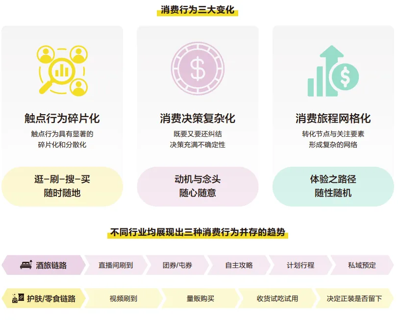 消费行为:决策路径非线性和碎片化,容易被内容种草、社交互动、即时场景影响。
