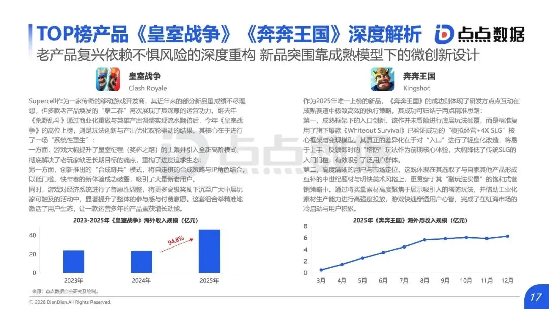 一是“价值深耕”,如《燕云十六声》以纯外观付费、放弃每日任务等“克制”设计换取长期口碑与全球破圈;二是“精准卡位”,如《杖剑传说》以“放置+MMO”融合开辟蓝海,实现海外营收同比激增59.46%;三是“生态协同”,小游戏与APP构建“流量漏斗+价值沉淀”的双端模型,买量则进化出“副玩法买量”等后IDFA时代新战术。