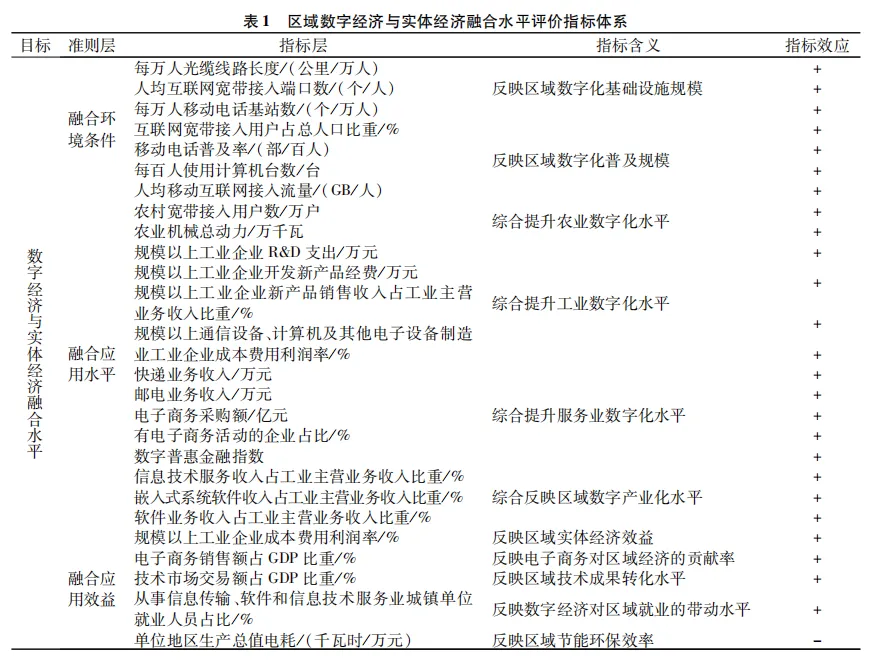 1.1 区域数字经济与实体经济融合水平评价指标体系