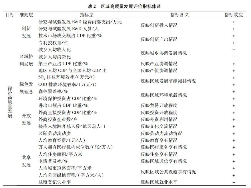 1.2 区域高质量发展评价指标体系
