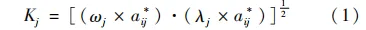 式中,(ωj×aij*)、(λj×aij*)分别表示熵权法和变异系数法的评价得分。其中,ωj、λj分别表示熵权法和变异系数法计算得出的各指标权重;aij*表示标准化数据。