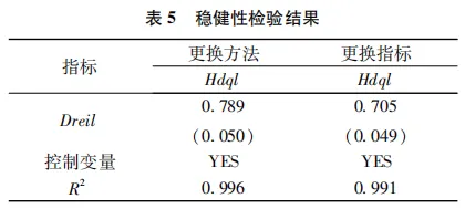 由表5可知,不管是更换方法还是指标,数实融合水平回归系数依然为正,表明数实融合依然赋能高质量的发展,与前文结果一致,验证了研究结果的稳健性。