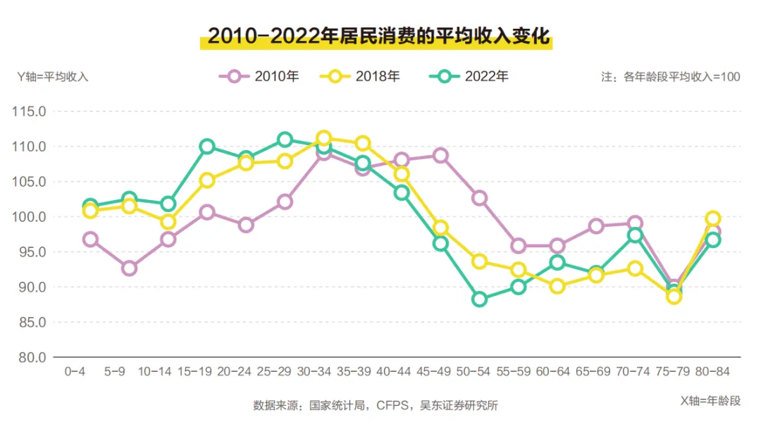 从人口基本面来看,人口老龄化趋势明显,65 岁及以上人口占比稳步攀升,但消费市场却呈现出显著的 “年轻化” 特征:2010 年的消费高峰还集中在 40-50 岁人群,2022 年已跃至 25-29 岁年轻圈层,消费 “驼峰” 左移让年轻群体从消费参与者升级为主导者。