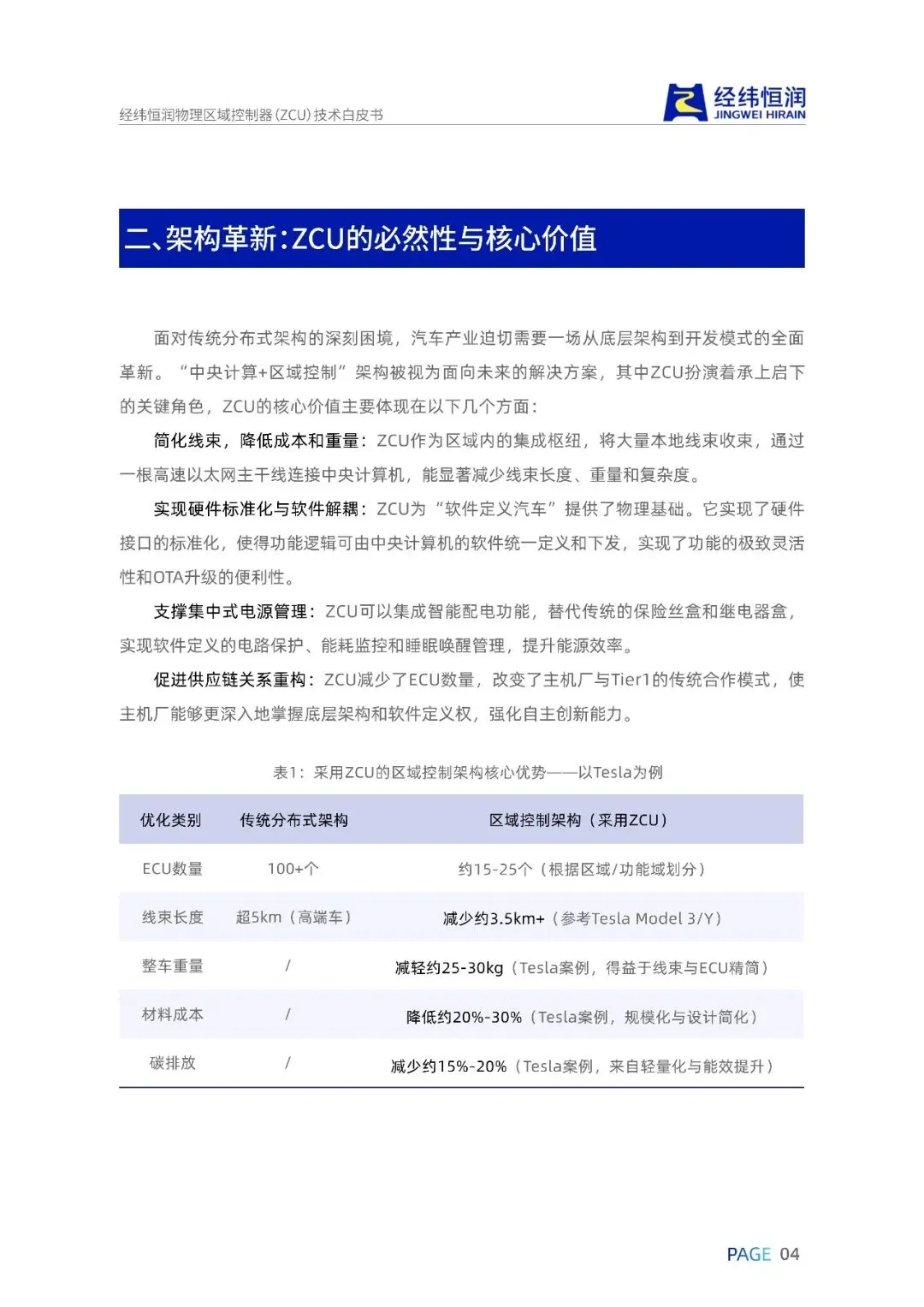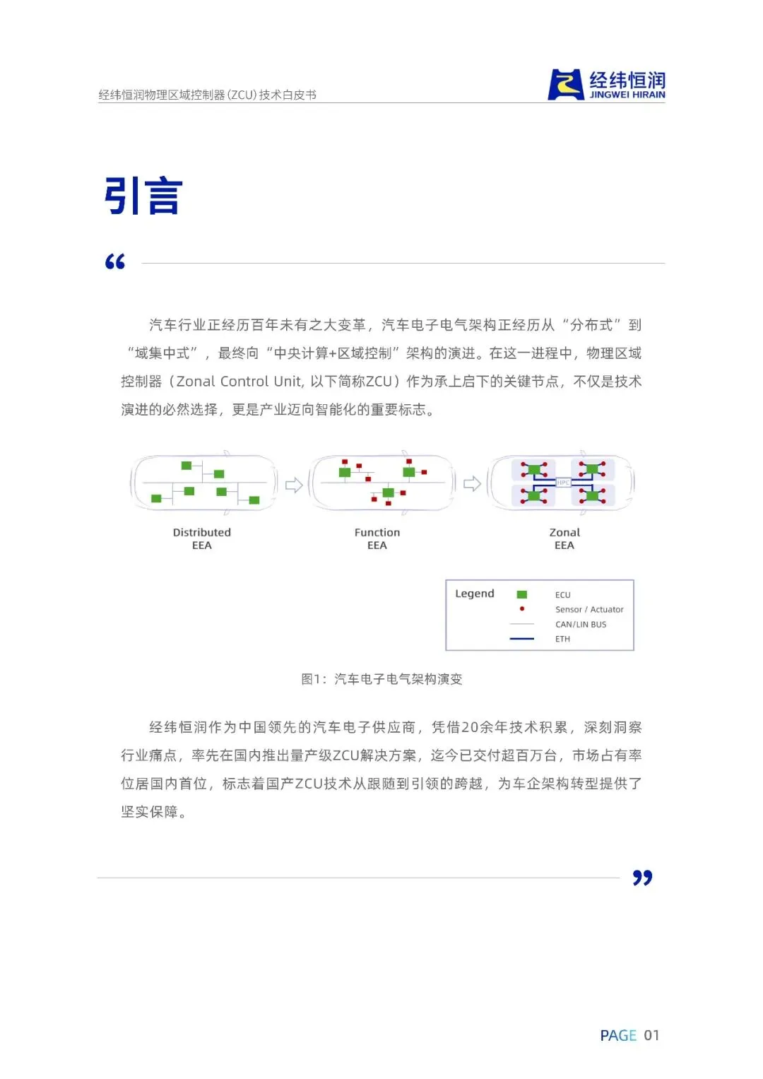 汽车行业正经历百年未有之大变革,汽车电子电气架构正经历从“分布式”到“域集中式”,最终向“中央计算+区域控制”架构的演进。在这一进程中,物理区域控制器(Zonal Control Unit, 以下简称ZCU)作为承上启下的关键节点,不仅是技术演进的必然选择,更是产业迈向智能化的重要标志。
