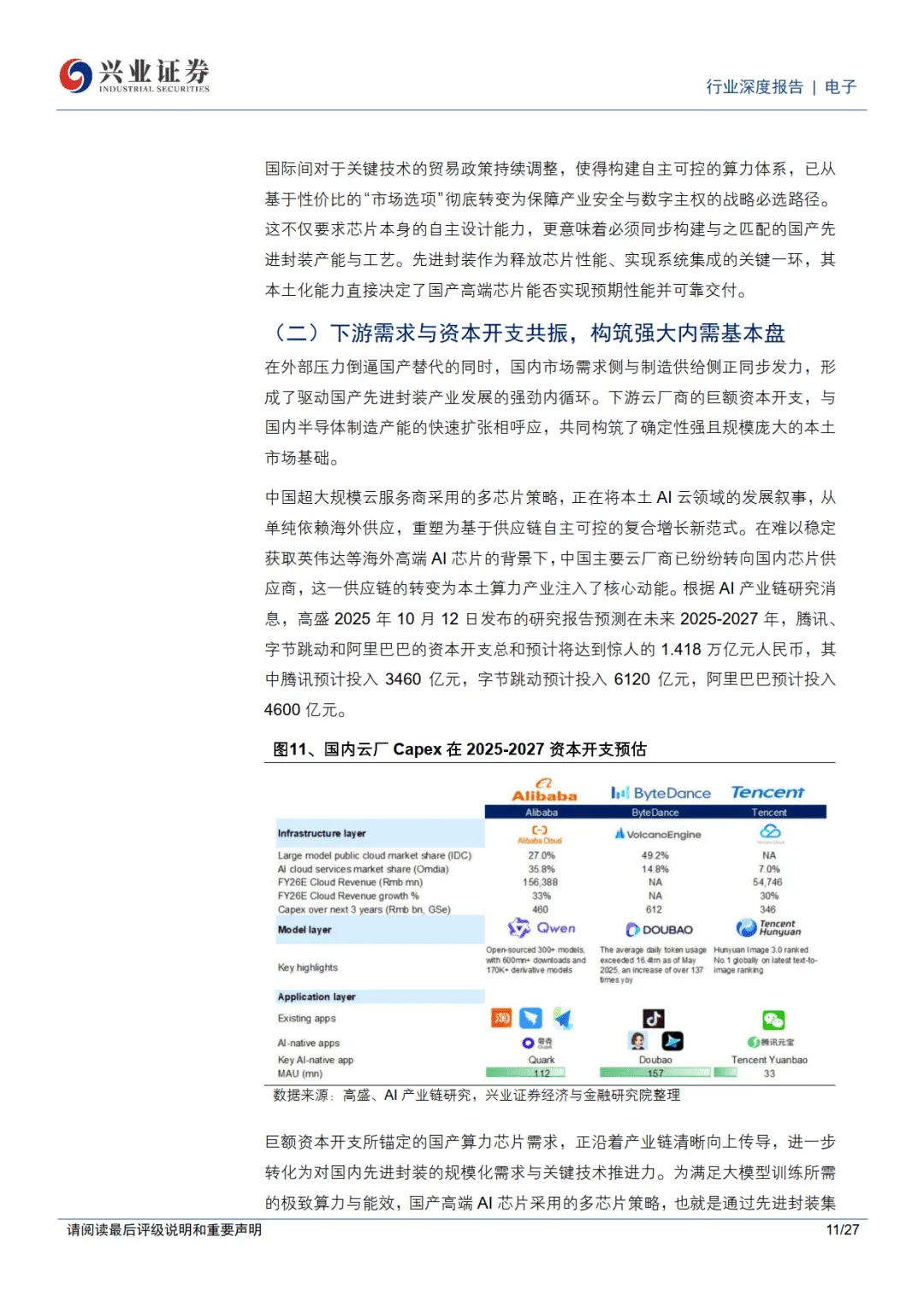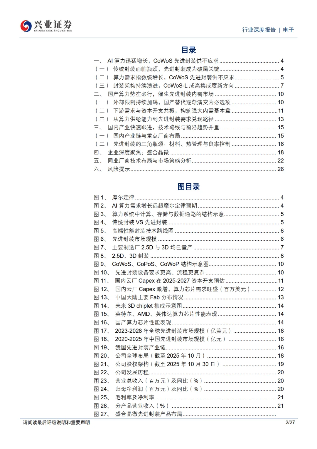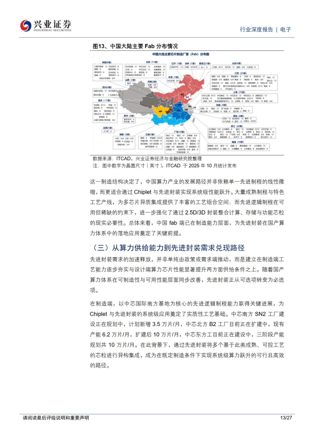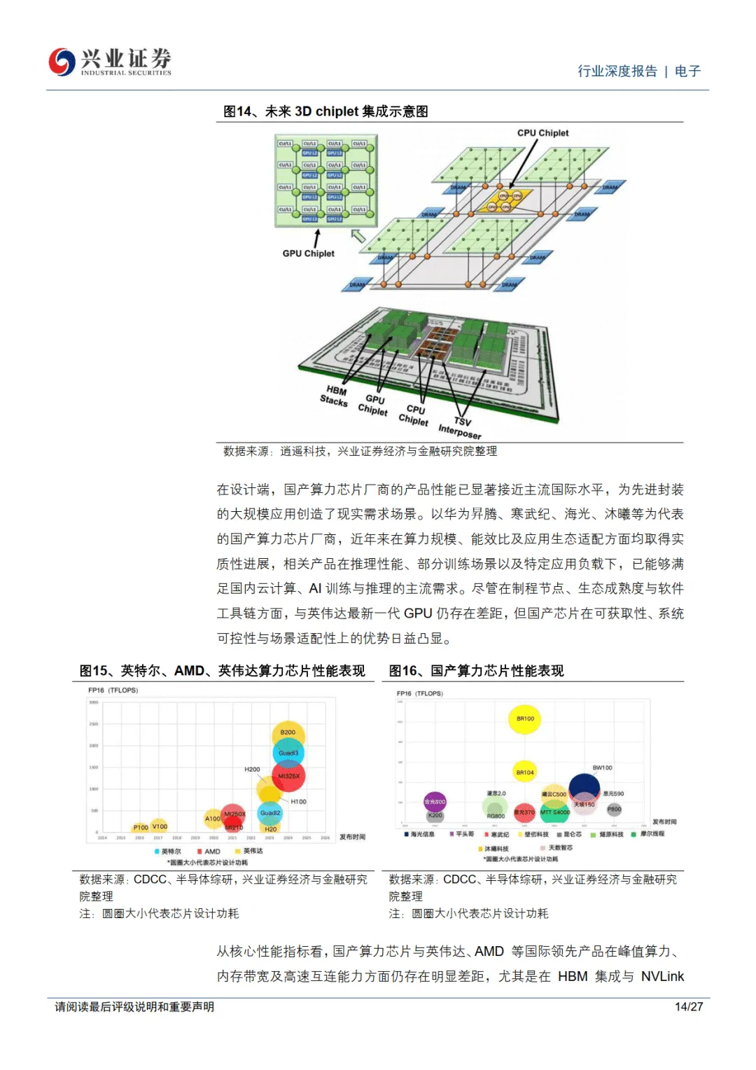 2026 年 1 月 30 日兴业证券电子行业深度报告指出,在算力国产替代成为战略必选的背景下,先进封装与先进制程并列成为国产 AI 算力体系关键支点,在高端芯片与制程受限的情况下,2.5D/3D 先进封装 + Chiplet 架构成为国产算力突破的核心路径,行业迎来确定性发展机遇。————