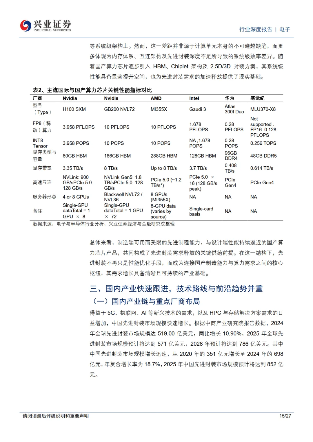 电子行业深度报告:AI算力发展需求推动先进封装成长,国产替代迎接新机遇-兴业证券