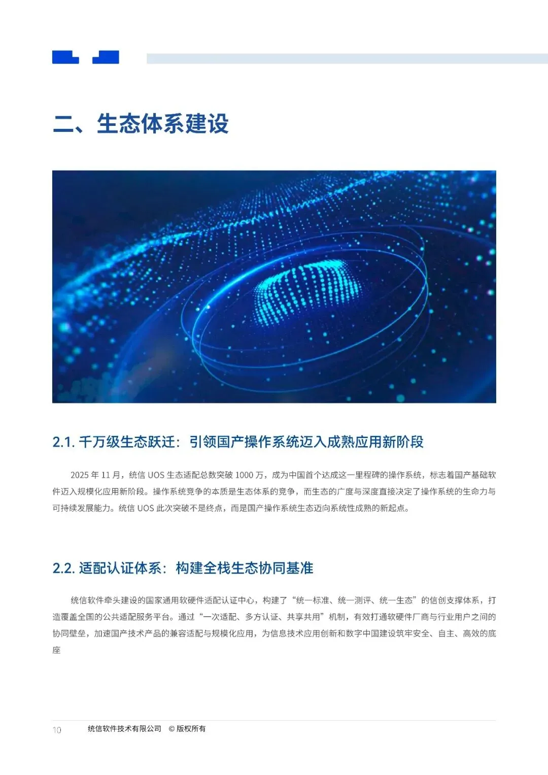 数字经济时代,操作系统作为数字基础设施的核心底座,其自主可控与生态成熟度直接关系到国家数字安全与产业业竞争力。随着国产化替代进入深水区,以及全球科技竞争路局的演变,构建自主、安全、开放的操作系统生态体系已成为产业发展的核心命题。统信软件作为中国操作系统领创企业,始终以自主操作系统技术为核心,深耕生态建设,推动国产基础软件从"可用"向"好用"选代,助力关键行业数字化转型和全产业链协同共赢。