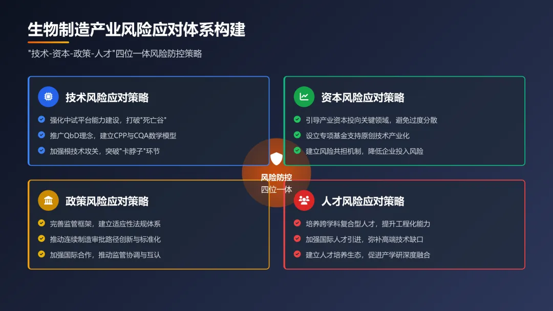 单一设备或技术点的突破难以构建持久优势,未来的竞争是“产学研用金”协同创新生态的竞争。突破“卡脖子”环节、实现跃升,依赖于材料科学、生物工程、精密制造、软件算法等多领域顶尖人才的深度协作,以及下游用户(特别是领先生物制造企业与工艺服务平台)的早期介入、联合开发与风险共担。政策正推动建立以场景需求为牵引的攻关模式,通过建设中试基地网络、组建创新联合体等方式。旨在共同构建具有自主性的技术标准体系与数据闭环,形成具备可持续性的产业创新生态。