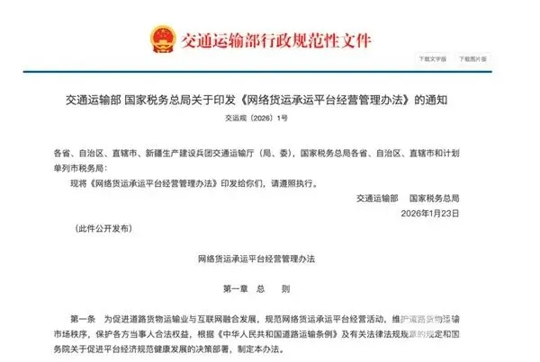 2026年1月下旬,交通运输部、国家税务总局联合印发《网络货运承运平台经营管理办法》,自印发之日起实施。《办法》在经营管理方面提出了多项具体要求,包含平台需申领《道路运输经营许可证》并具备相应的线上服务能力、必须建立健全安全生产管理制度、需对实际承运车辆及驾驶员资质进行严格审查、确保线上线下提供服务的主体一致、不得委托超越实际承运人经营范围的业务、不得虚构运输交易、不得指使或强令超载超限运输、需按要求将运输单证信息上传至省级网络货运信息监测系统、应合理制定交易规则和服务协议、建立服务评价与投诉举报机制等。