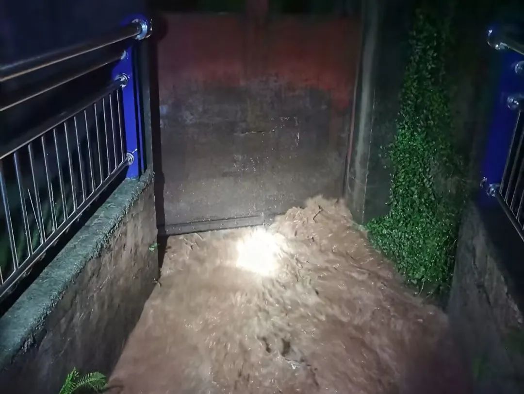 夜已深、雨未停。4时57分,雅安市气象台更新暴雨橙色预警信号为暴雨红色预警信号,瞬间,暴雨倾盆而下,周公堰水位不断上涨,高出地面超30厘米。