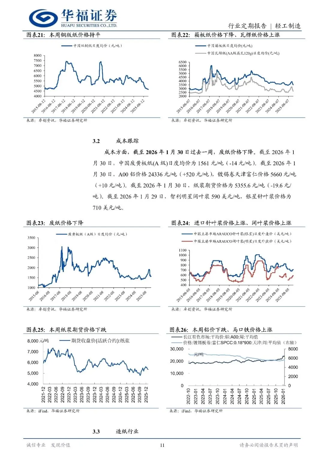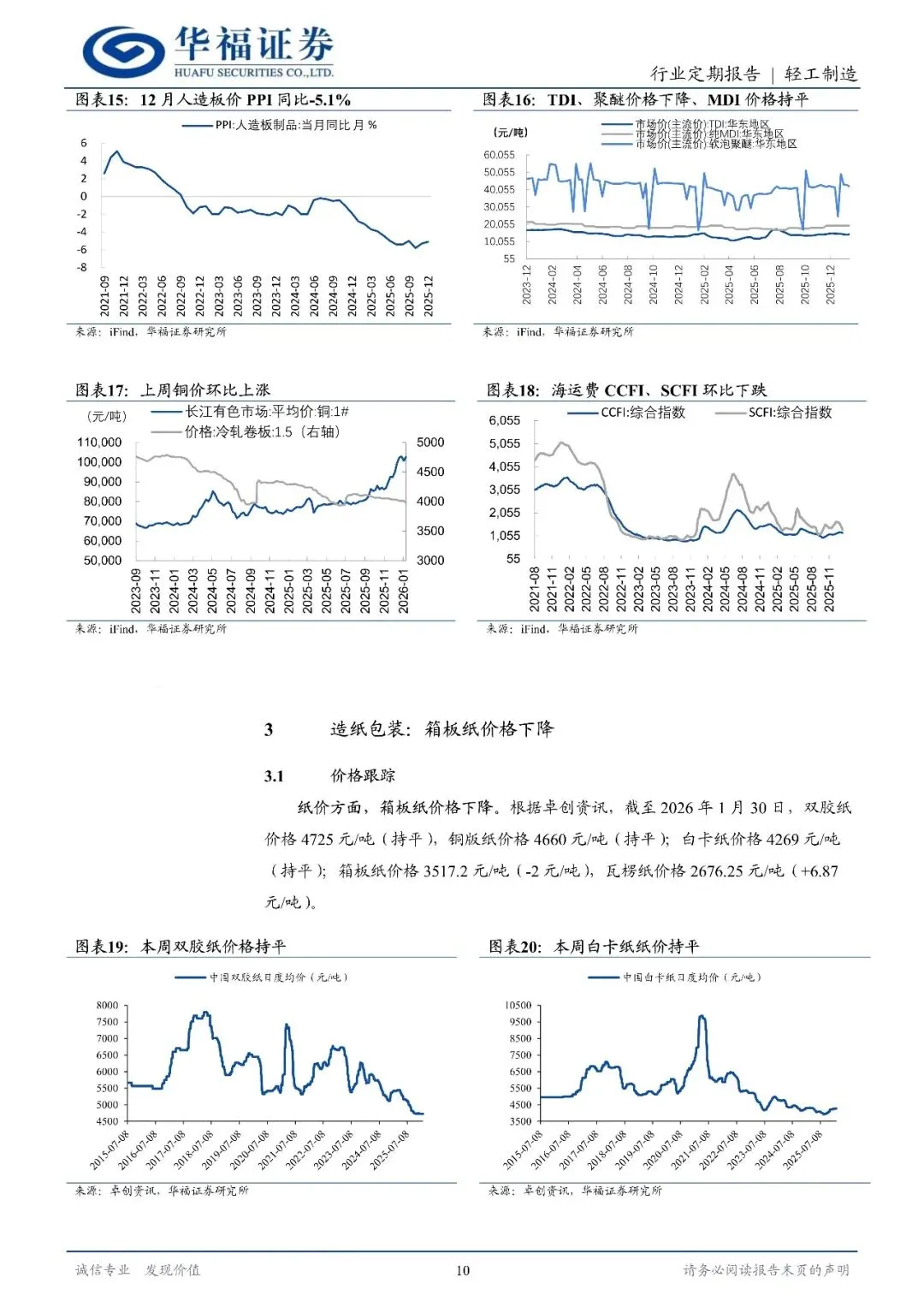轻工制造行业定期报告:家居估值修复延续,Suzano提涨2月浆价-260131-华福证券-20页