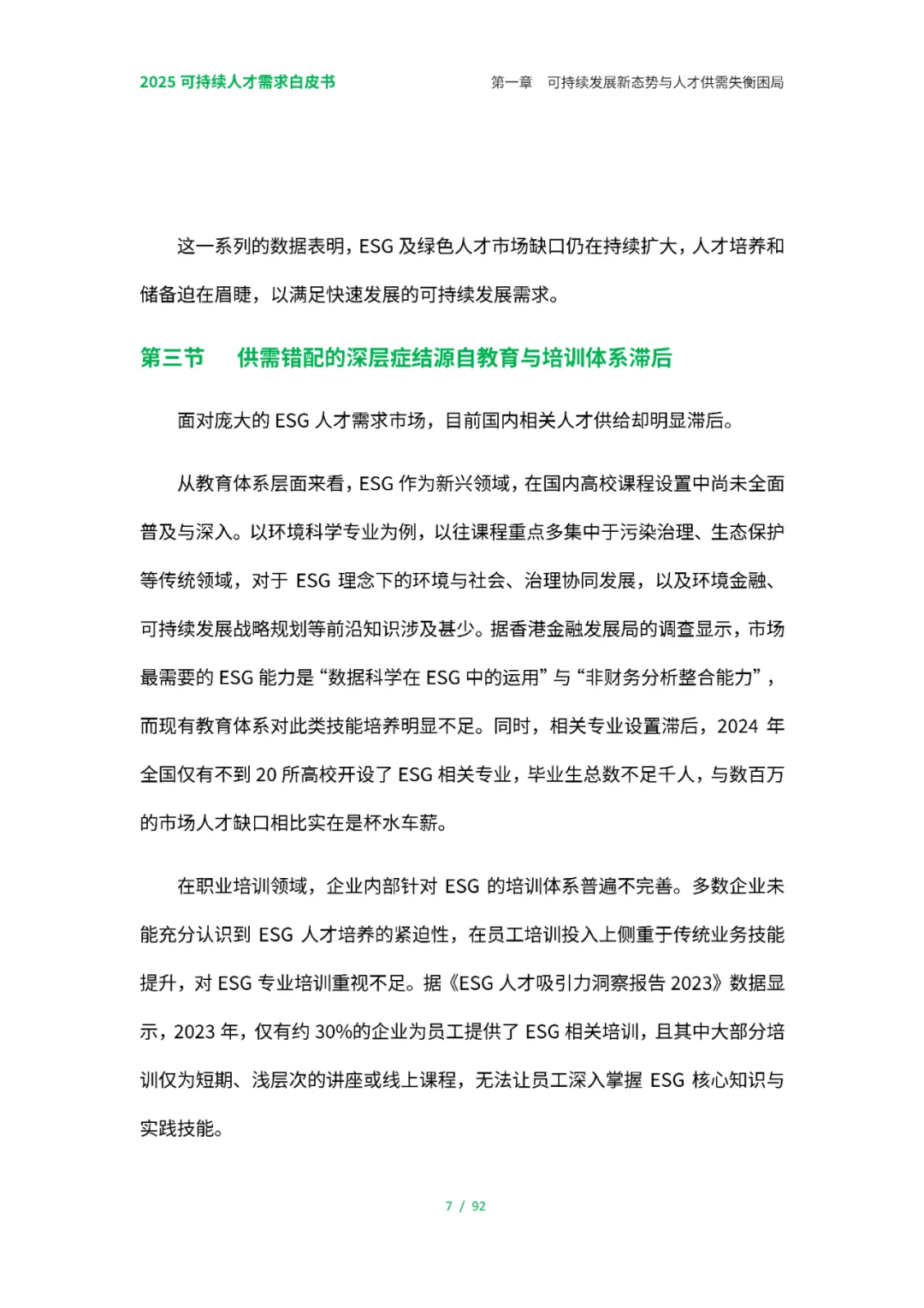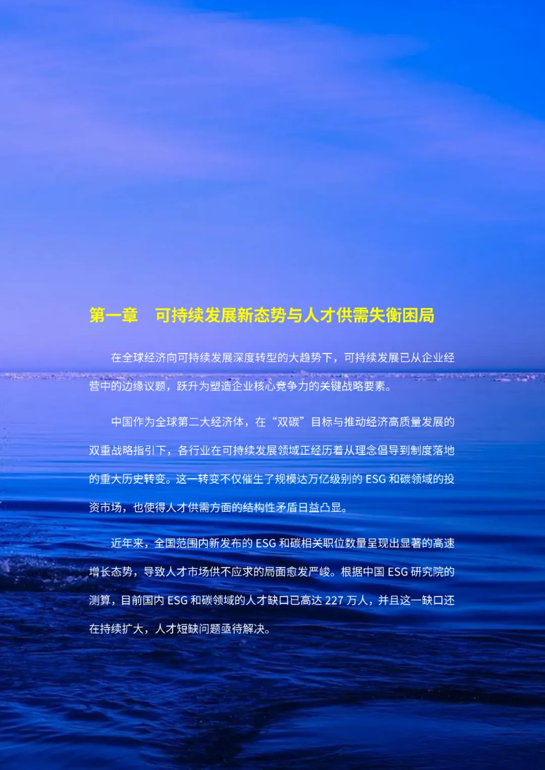 报告指出,在全球可持续发展趋势下,中国各行业正面临人才供需失衡的挑战,特别是在ESG(环境、社会和治理)和碳领域,人才缺口高达227万人。