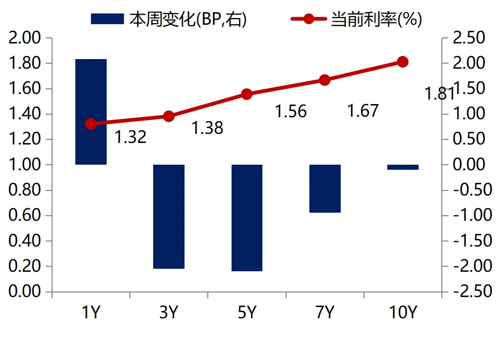 国债关键期限利率及周度变化
