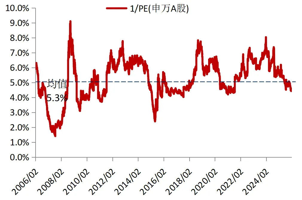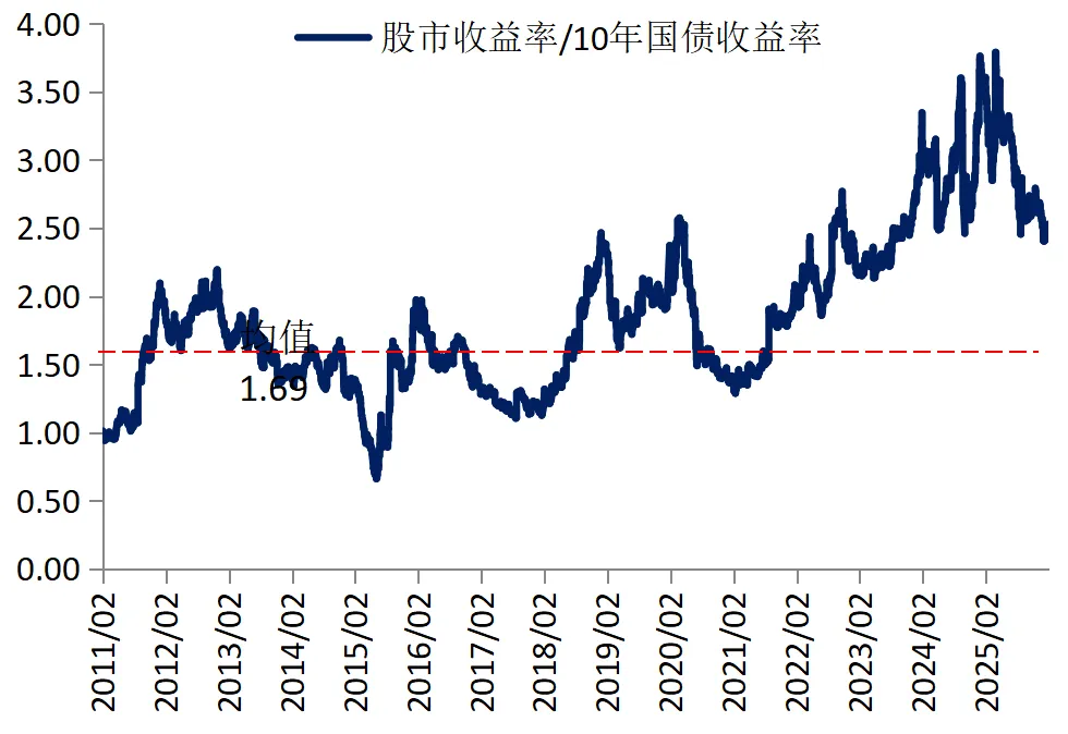 股市收益率/10年国债收益率走势(近15年)