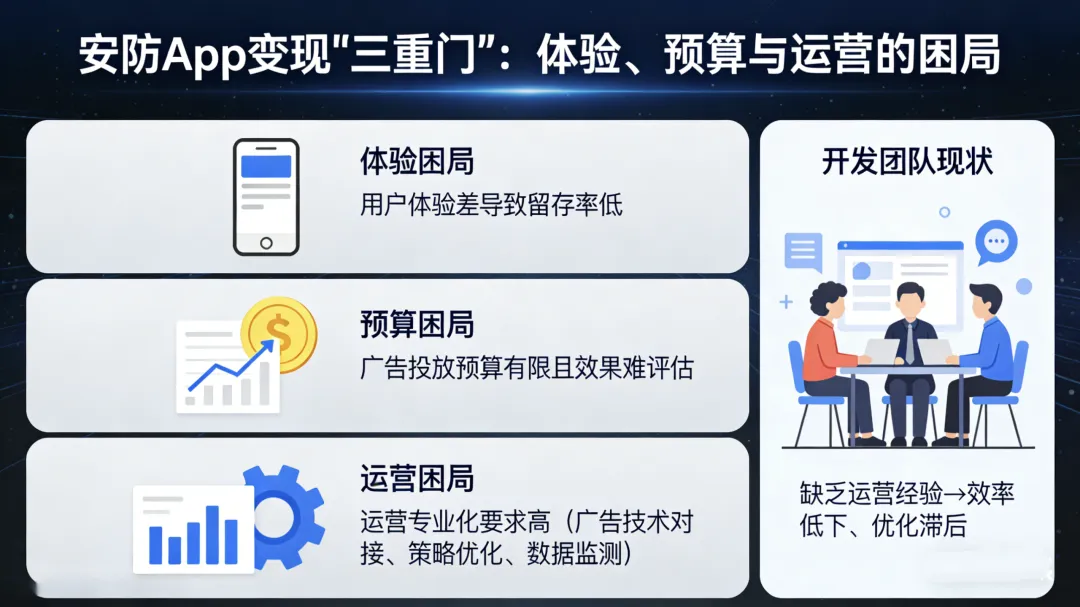 例如,某国内领先的安防监控应用,虽然设备激活量已达上千万台,日活用户上百万,却在变现过程中遭遇收益不佳的瓶颈,这也反映出,单纯拥有流量并不等同于具备高效变现的能力,系统化的商业运营与技术支撑同样关键。