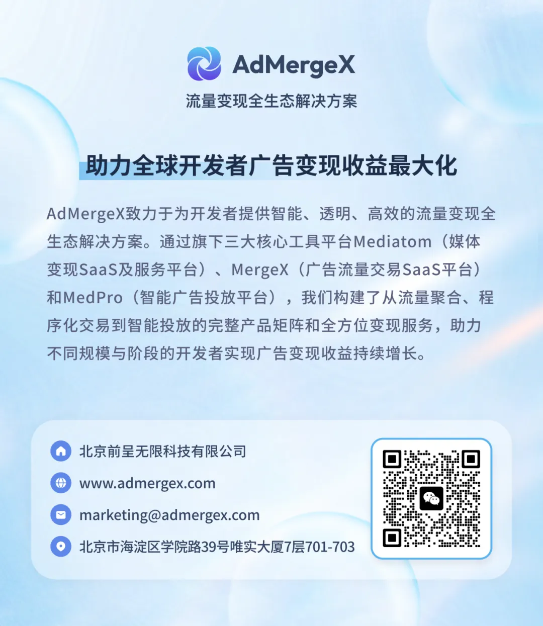▼点击【阅读原文】访问AdMergeX官网,开启高效变现之旅。