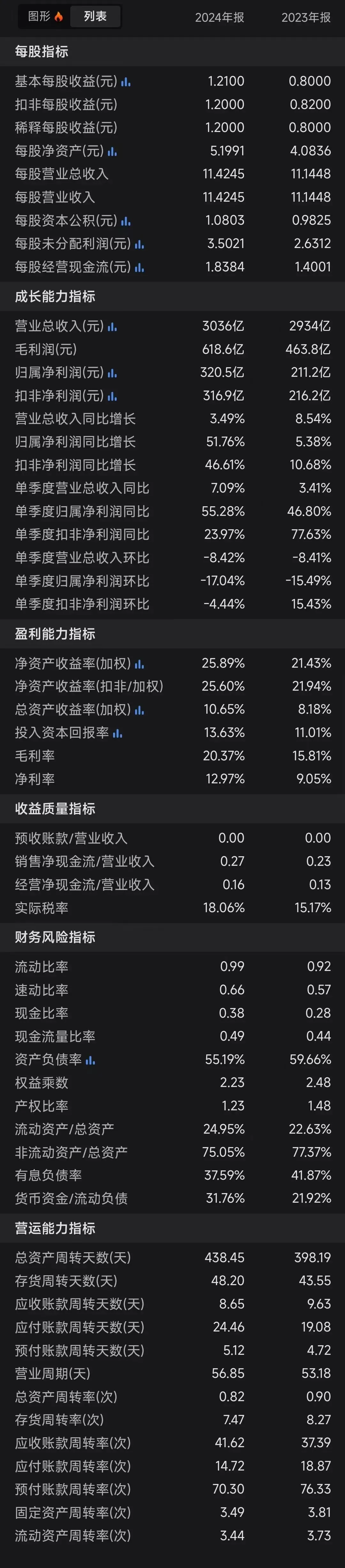 • 主业扎实:扣非净利润增速(46.61%)≈归属净利润增速(51.76%),增长来自主业 • 现金为王:经营现金流/营收(0.13→0.16)>安全线 + 经营现金流/净利润(1.75→1.52)连续>1.5 • 效率跃升:净利润增速/营收增速=14.83倍 + 毛利率↑4.56% + ROE内生提升(权益乘数↓)? 结论:不是“纸面富贵”,是产品结构优化/成本管控见效的高质量增长!