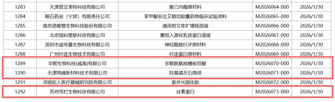 近日,国家药品监督管理局医疗器械技术审评中心(CMDE)更新了医疗器械主文档登记信息公示,此次更新中,共有10个医疗器械主文档登记信息进行了最新公示,本次公示涵盖多项医美成分,包括:多聚脱氧核糖核苷酸、羟基磷灰石微球、丝素蛋白等。