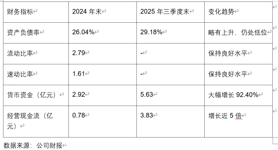 杰普特的财务状况呈现出稳健、健康的特征。截至 2025 年 9 月末,公司总资产 31.19 亿元,较年初增长约 13%;股东权益 22.09 亿元,资产负债率为29.18%,处于较低水平,财务风险可控(126)。在现金流方面,公司 2025 年前三季度经营活动现金流净额达到3.83 亿元,而去年同期为 - 0.21 亿元,实现了历史性的逆转。更重要的是,3.83 亿元的经营现金流净额是同期 2.04 亿元净利润的1.9 倍,表明公司的盈利质量极高。公司货币资金达到 5.63 亿元,较上年同期的 2.92 亿元增长 92.40%,流动性状况明显改善。从资产质量来看,公司的应收账款管理能力有所提升。尽管 2024 年应收账款同比增长 38.03%,但 2025 年以来,随着下游客户回款能力的改善,公司的资金周转效率明显提高。有息负债为 7518.78 万元,同比增长 35.82%,处于较低水平,财务杠杆运用适度。四、管理层能力与战略规划