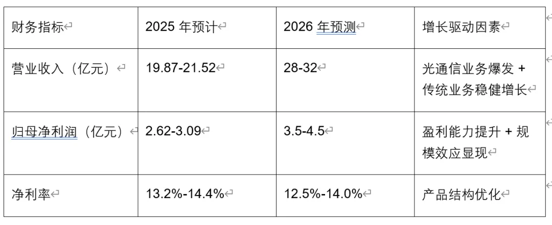 2026 年将是杰普特光通信业务的爆发元年。根据公司规划和市场发展趋势,以下几个关键节点值得重点关注:第一季度:北美客户 1 亿美金订单开始批量交付,MPO+FAU 产品组合进入规模化生产阶段。同时,公司与中际旭创等 CPO 产业链核心企业的合作将进入实质阶段。第二季度:随着 1.6T 光模块成为市场主流需求,FAU 产品的单设备用量优势将充分显现。公司预计在这一阶段实现光通信业务收入占比达到 25%-30%。第三季度:消费级激光器在雕刻机、3D 打印市场的渗透率预计将显著提升。公司的激光雕刻设备已成功打入苹果供应链,有望在消费电子领域实现新的突破。第四季度:全年业绩有望实现超预期增长,光通信业务占比预计达到 30%-40%,成为公司第二大收入来源。同时,公司在 "激光 + AI + 机器人" 领域的布局也将开始贡献收入。5.3 风险因素与应对措施