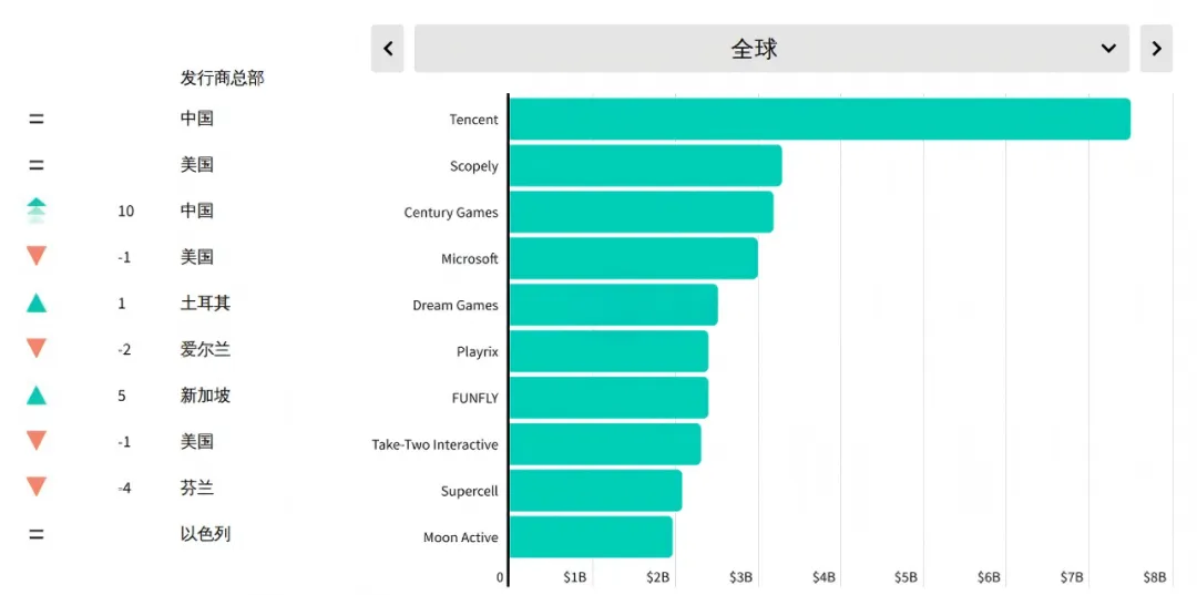点点互动、FUNFLY这些东方游戏公司表现很好,腾讯连续好几年都是全球手游收入第一名。