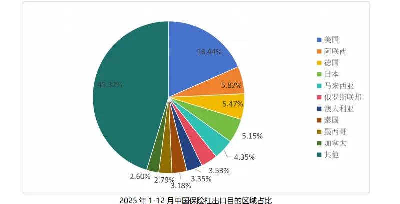 2025 年 1-12 月,中国保险杠主要出口至美国、阿联酋、德国等地区,三地区合计占出口总量的 29.73%;出口增量比较大的是马来西亚、南非等国家。具体参见下图: