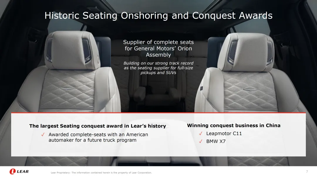将为通用汽车Orion工厂提供整椅,进一步巩固公司作为通用全尺寸皮卡和SUV座椅供应商的良好业绩记录;