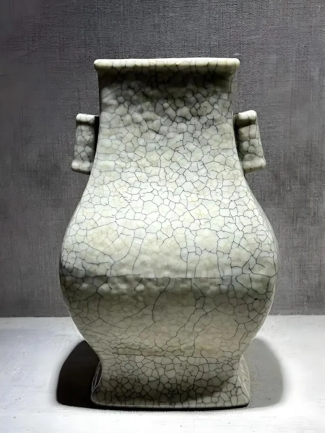 南宋哥窑灰青釉贯耳八方贯耳壶