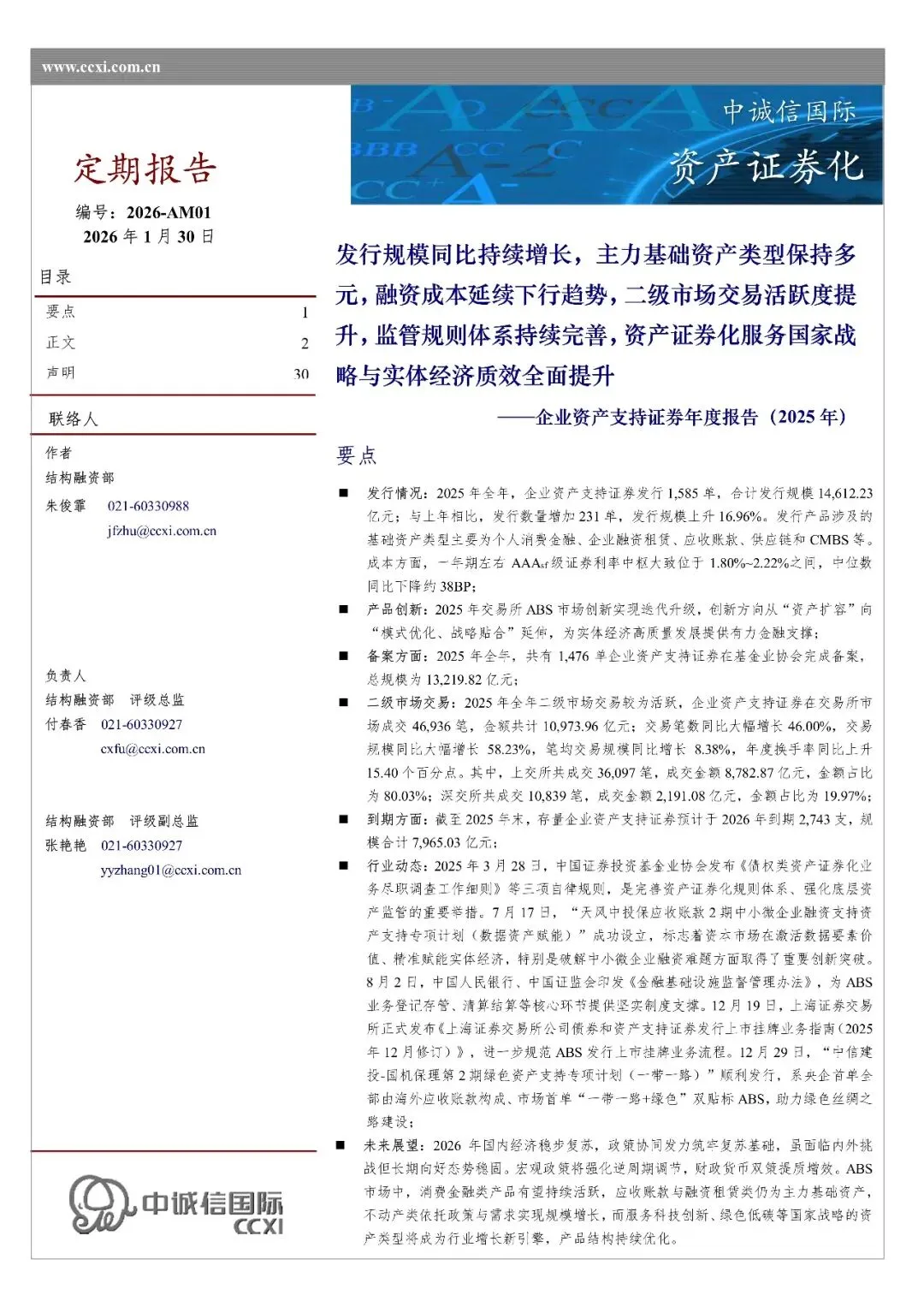 回复暗号:企业资产支持证券年度报告(2025年)-30页