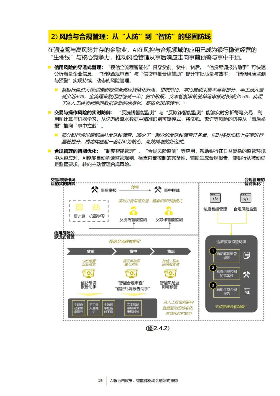 实施路径:价值引领、治理护航强调AI转型需以业务价值为导向,建立与成熟度匹配的动态治理体系,尤其对中小银行建议“聚焦场景、生态合作、敏捷突围”。
