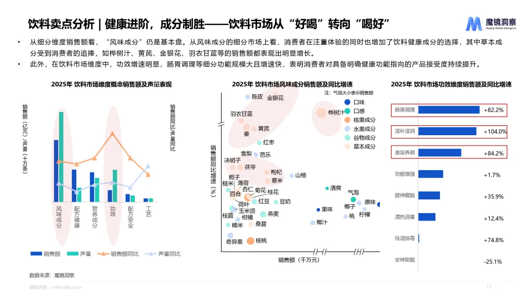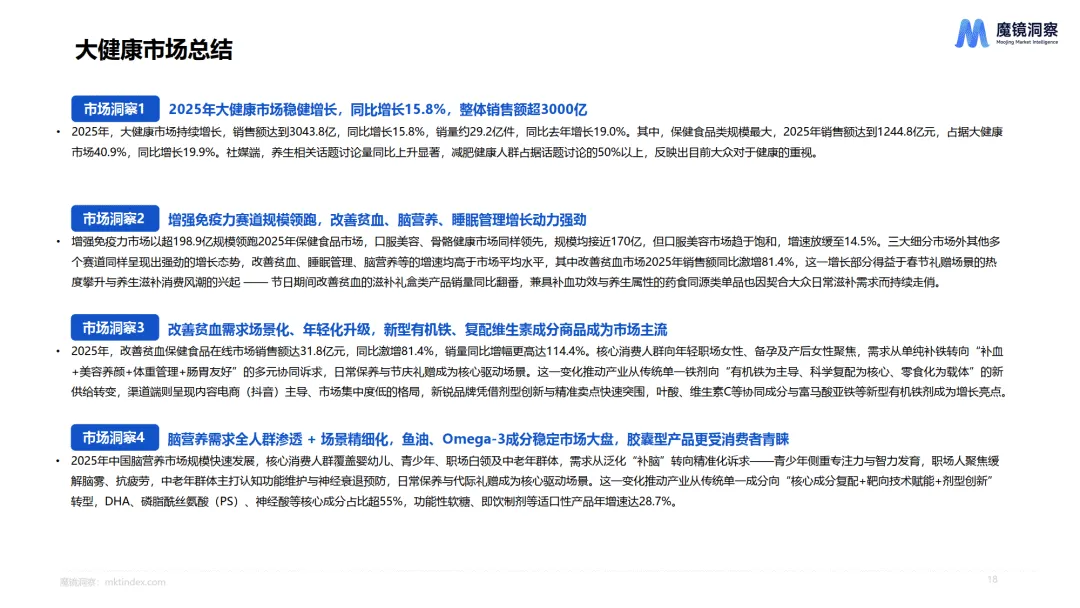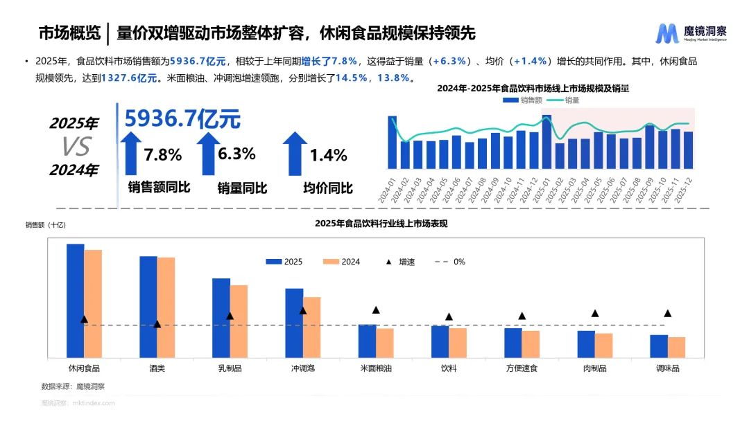 2025 年中国消费市场各赛道均呈现差异化增长特征,健康化、功能化、智能化成为核心趋势,量价齐升与消费分层并存,新兴品类凭借技术创新和场景适配实现快速突破,魔镜洞察通过全维度数据解析了食品饮料、大健康、家用电器、美妆护肤、3C 数码、母婴六大核心赛道的发展逻辑与市场机会。