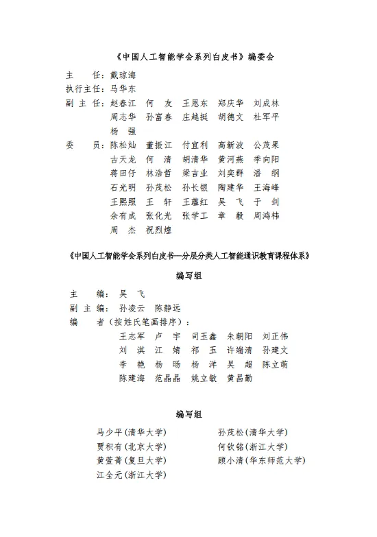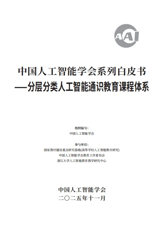 人工智能正深刻重塑社会结构与人类发展范式,普及人工智能通识教育已成为全球教育变革的战略共识。为系统回应这一时代需求,中国人工智能学会凝聚国内顶尖高校及产业界智慧,正式发布《分层分类人工智能通识教育课程体系》白皮书。