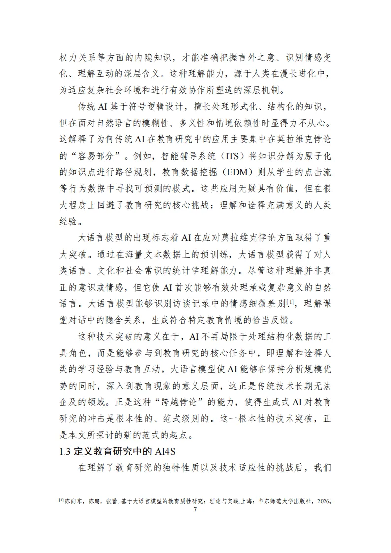 《教育研究中的AI4S》白皮书系统探讨了人工智能驱动的科学研究(AI4S)在教育领域的应用与变革,揭示了AI技术对教育研究范式、方法、质量标准及伦理规范的深远影响。