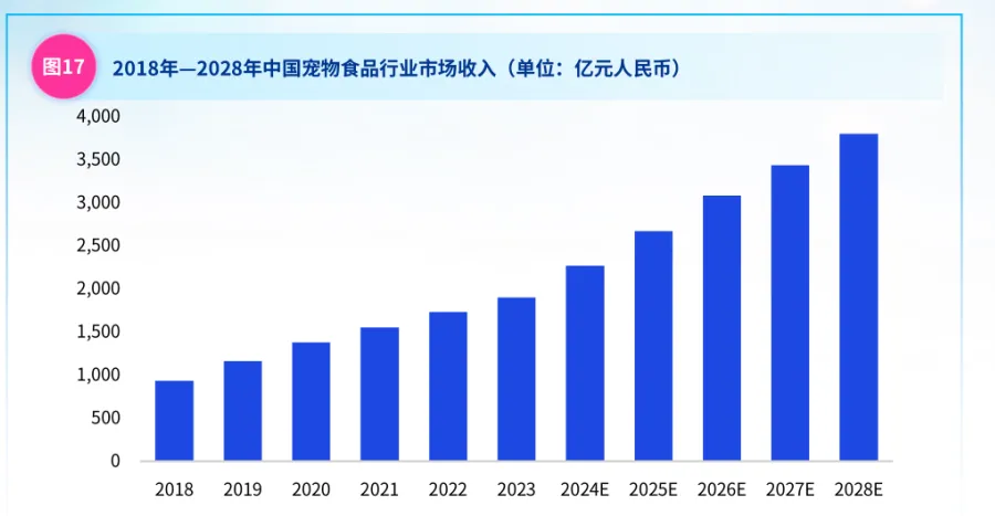 在"悦己经济"与"情感消费"崛起的宏观背景下,宠物经济正以不可忽视的增速重塑中国宠物消费市场格局。2024年,我国城镇宠物(犬猫)市场规模超过3,000亿元,预计至2027年有望突破4,000亿元。