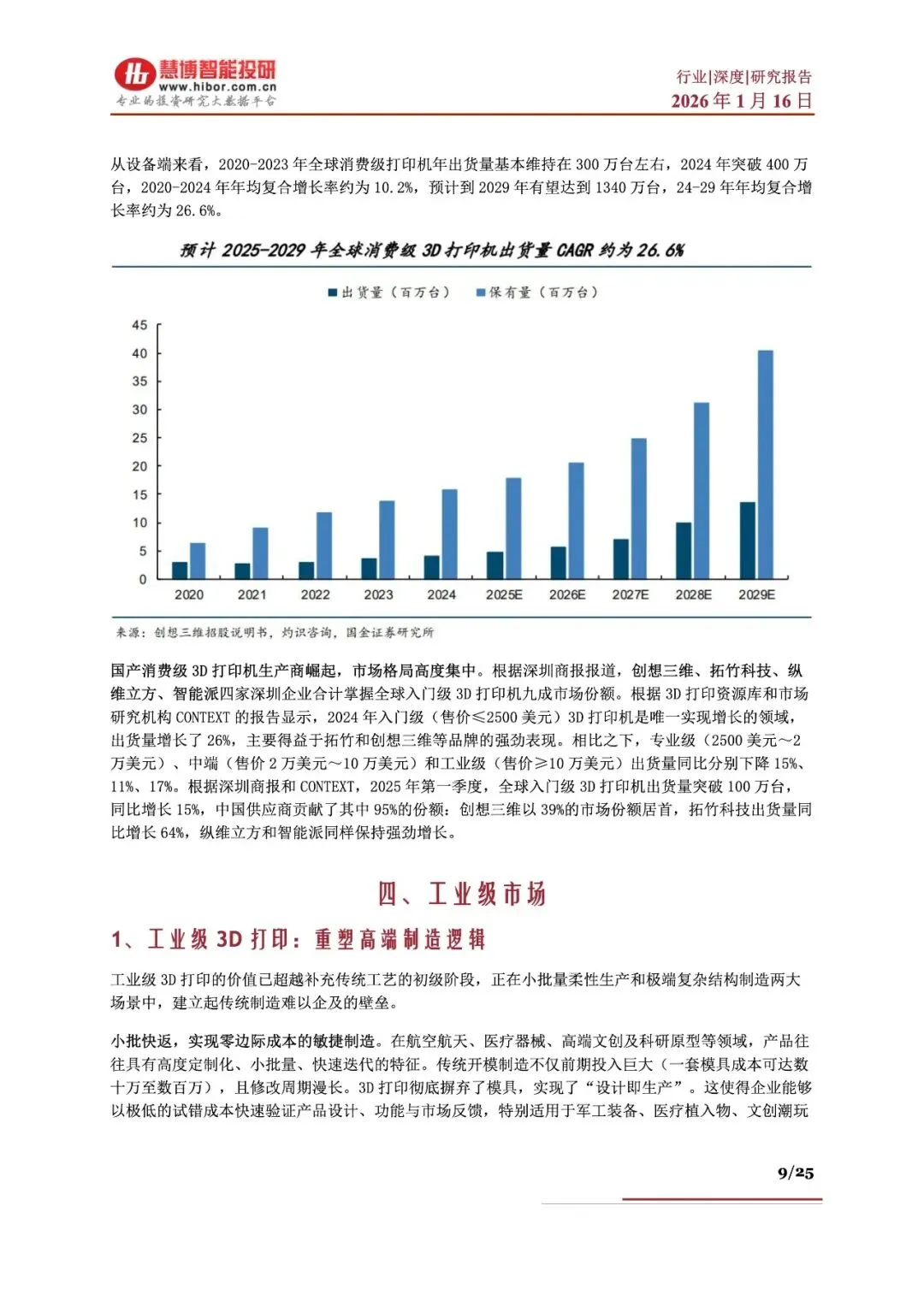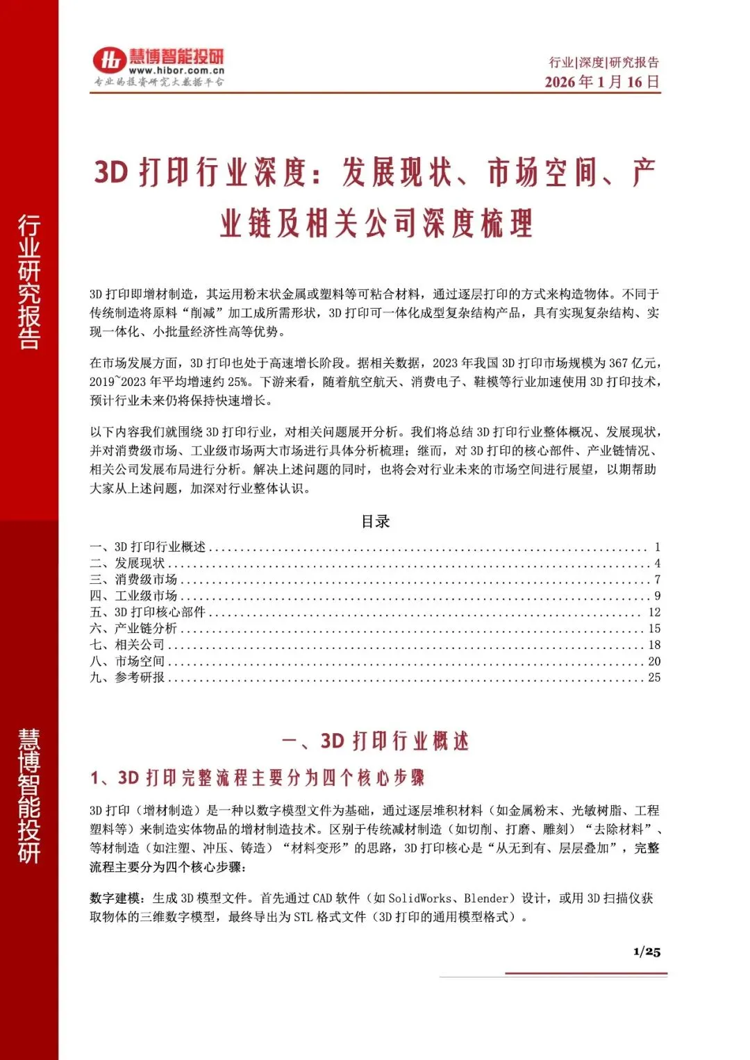 报告名称:《20263D打印行业深度:发展现状、市场空间、产业链及相关公司深度梳理》