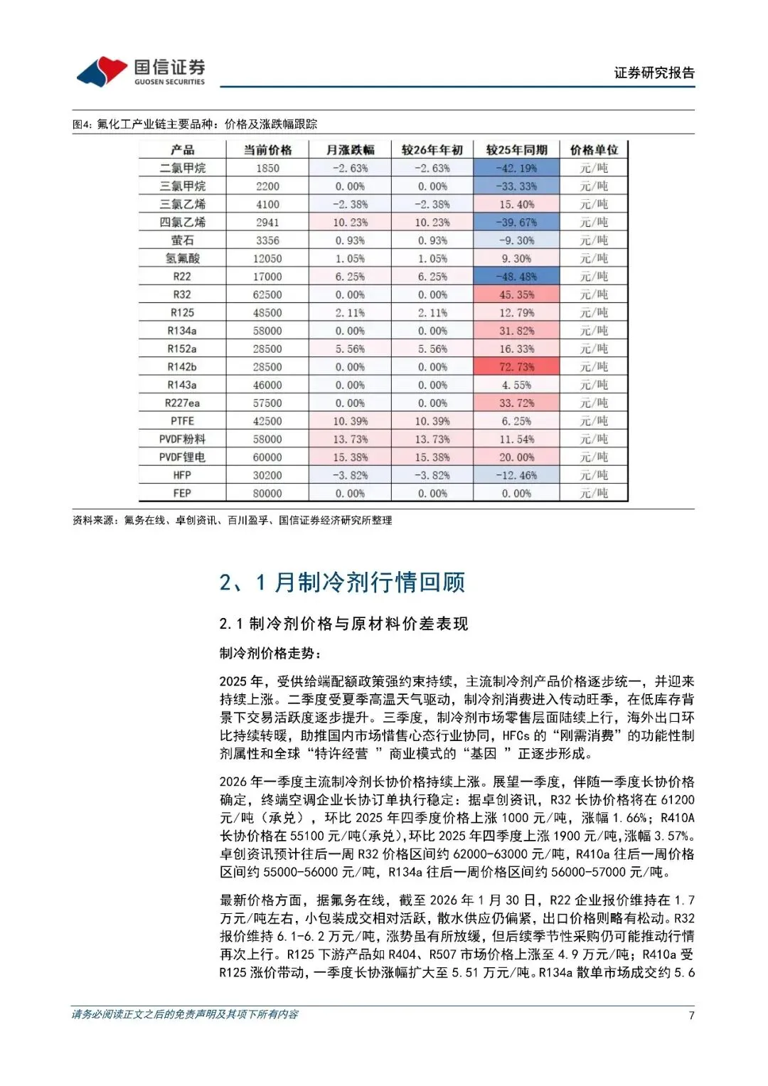 氟化工行业:2026年1月月度观察,氟化工公司业绩高速增长,含氟聚合物价格持续上行-260206-国信证券-26页