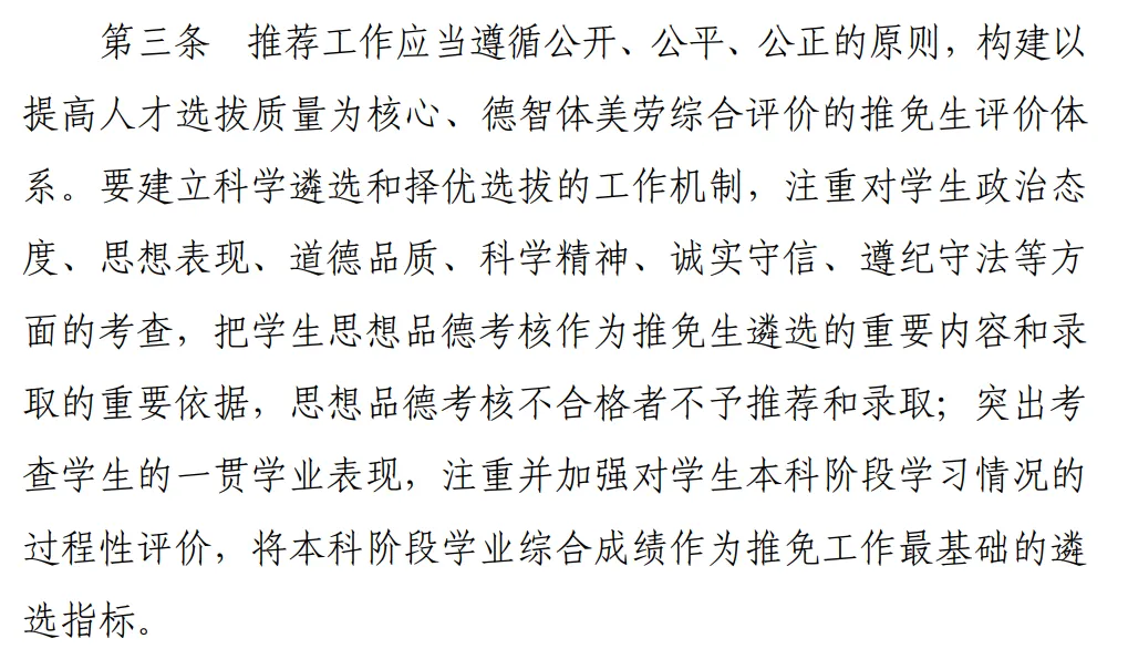 思想品德考核不合格者不予推荐。坚持客观评价。量化业务课考核成绩和综合素质考核成绩。