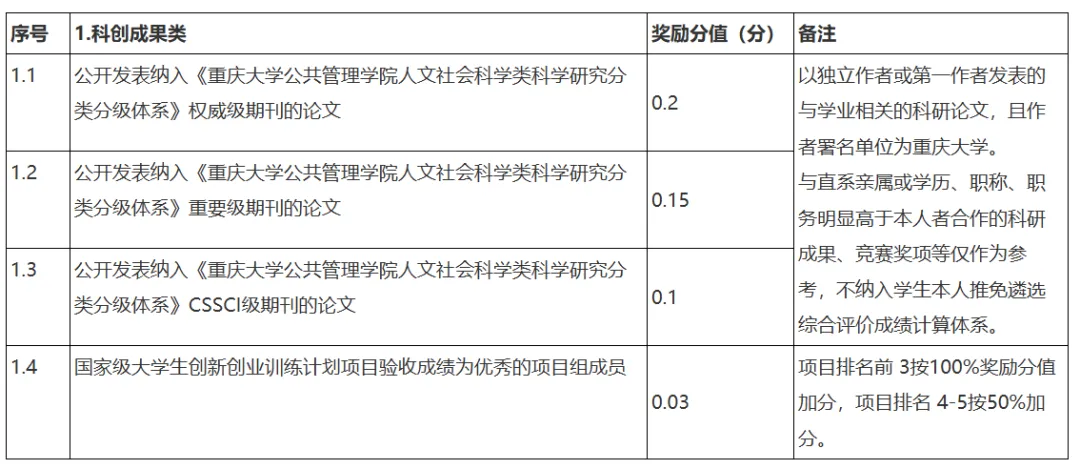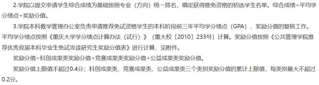 在奖励分加分方面,公共管理学院还公布了其他的要求,比如:同一荣誉只计获得加分值最高的1项,且只加一次。获得各类竞赛奖励和论文公开发表的截止日期为当年8月31日。