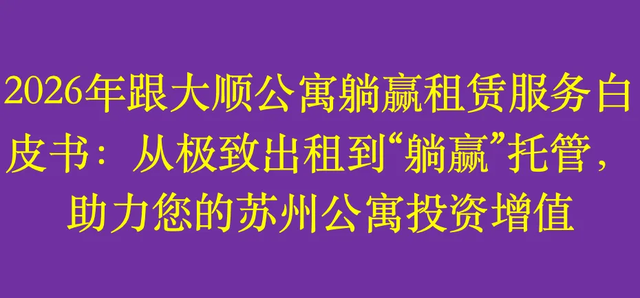 作为深耕苏州公寓市场16年的“大顺”,我们已经管理超过6200套公寓。为了帮助投资者实现“从收租到躺赢”的目标,我们在2026年对公寓出租和托管服务进行了全面升级,让您的投资更加省心、省钱且高效。