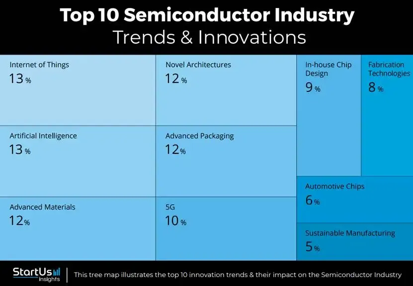 在这一宏观背景下,StartUs Insights 用大数据平台扫描了470万家初创与成长型企业,最终聚焦1336家半导体公司,提炼出十大趋势。