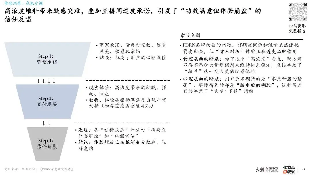 ● 繁荣之下的“肤感灾难”: 种草时“秒吸收”的满意度高达99%,收货后“厚重搓泥”的满意度却低至-86%。