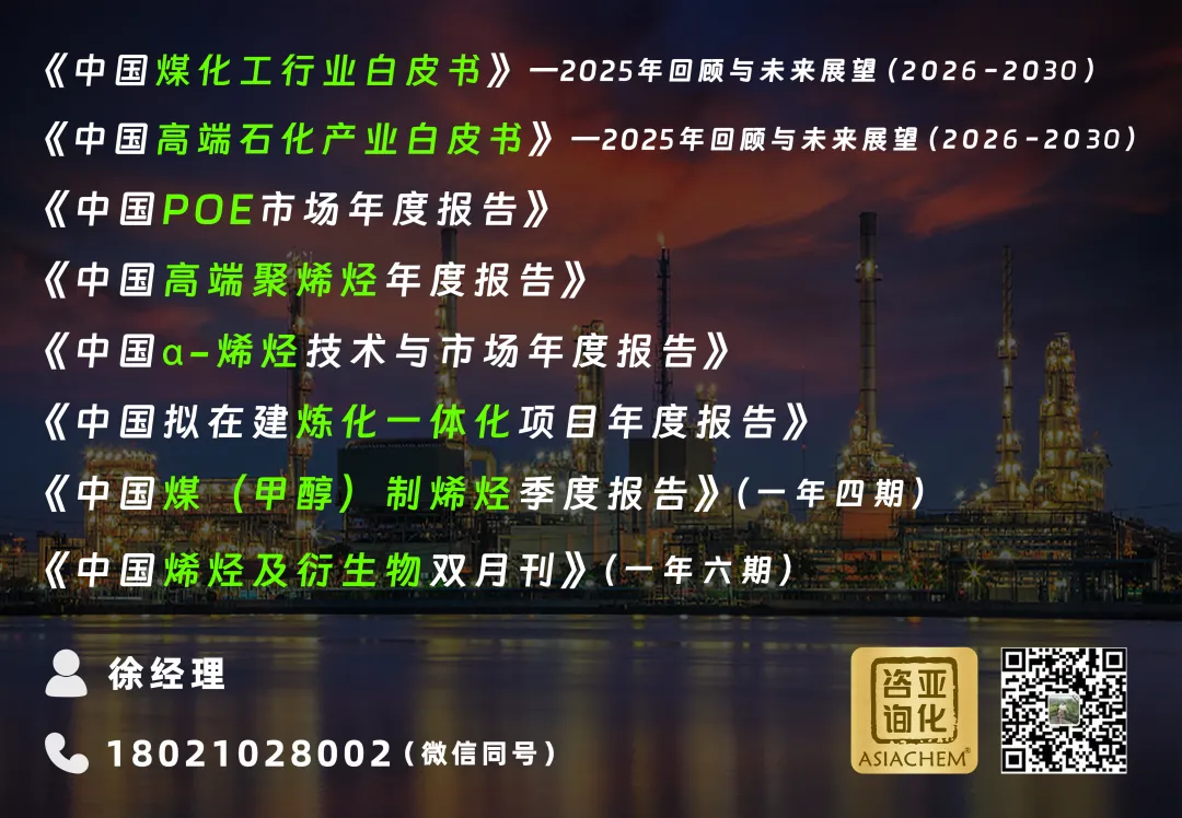 亚化咨询推出《中国高端石化产业白皮书—2025年回顾与未来展望(2026-2030)》和《中国高端石化月报2026》。敬请联系获取目录和样刊。