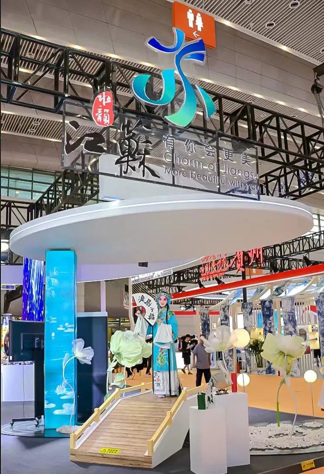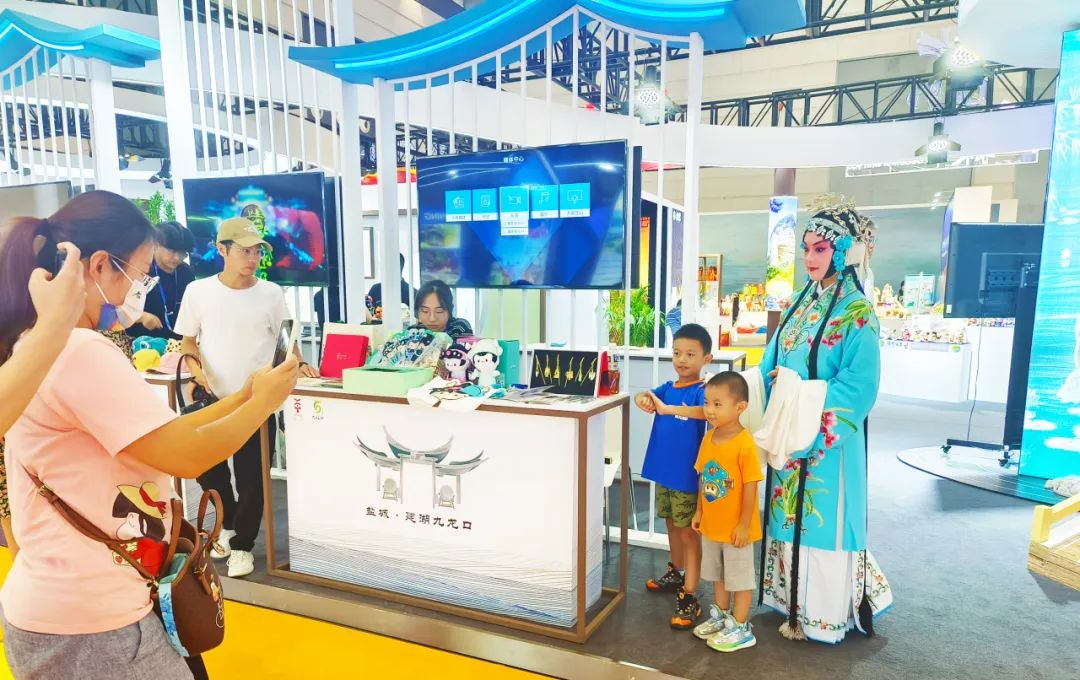 展会现场,来自建湖九龙口旅游度假区的文旅推介官向大家全方位介绍了建湖九龙口丰富的旅游资源及非遗文化产品。建湖独特的湿地风光及淮剧、杂技表演很受欢迎,吸引众多国内外参展游客驻足欣赏和争相拍照!大家零距离感受建湖水乡风情及淮杂艺术的魅力,一同沉浸在热闹的氛围中。