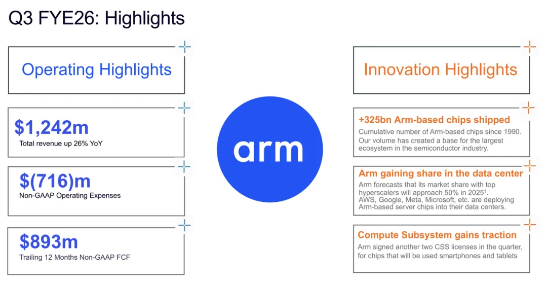 芝能智芯出品Arm2026 财年第三季度是一份非常“标准的好财报”: