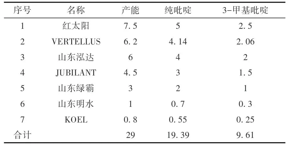 表1 全球主要吡啶碱产能分布(×10000 t/a)