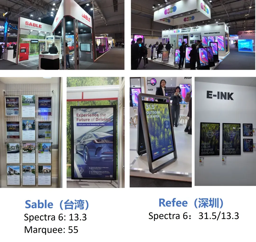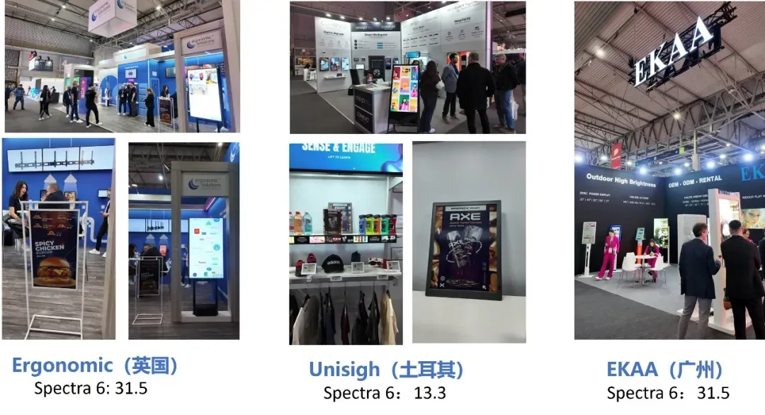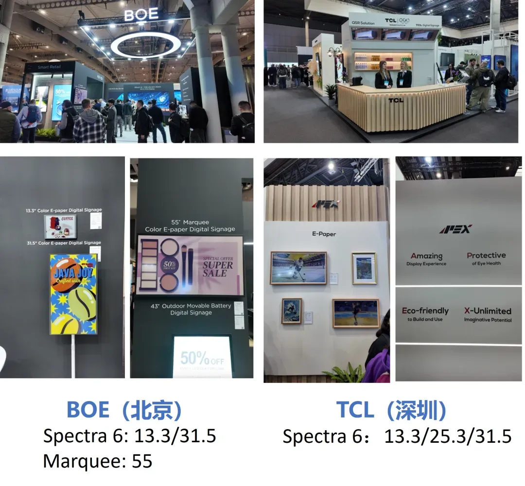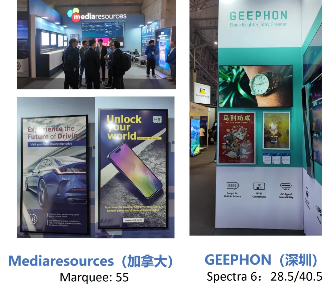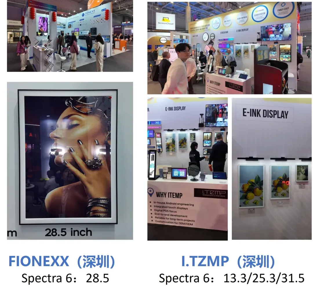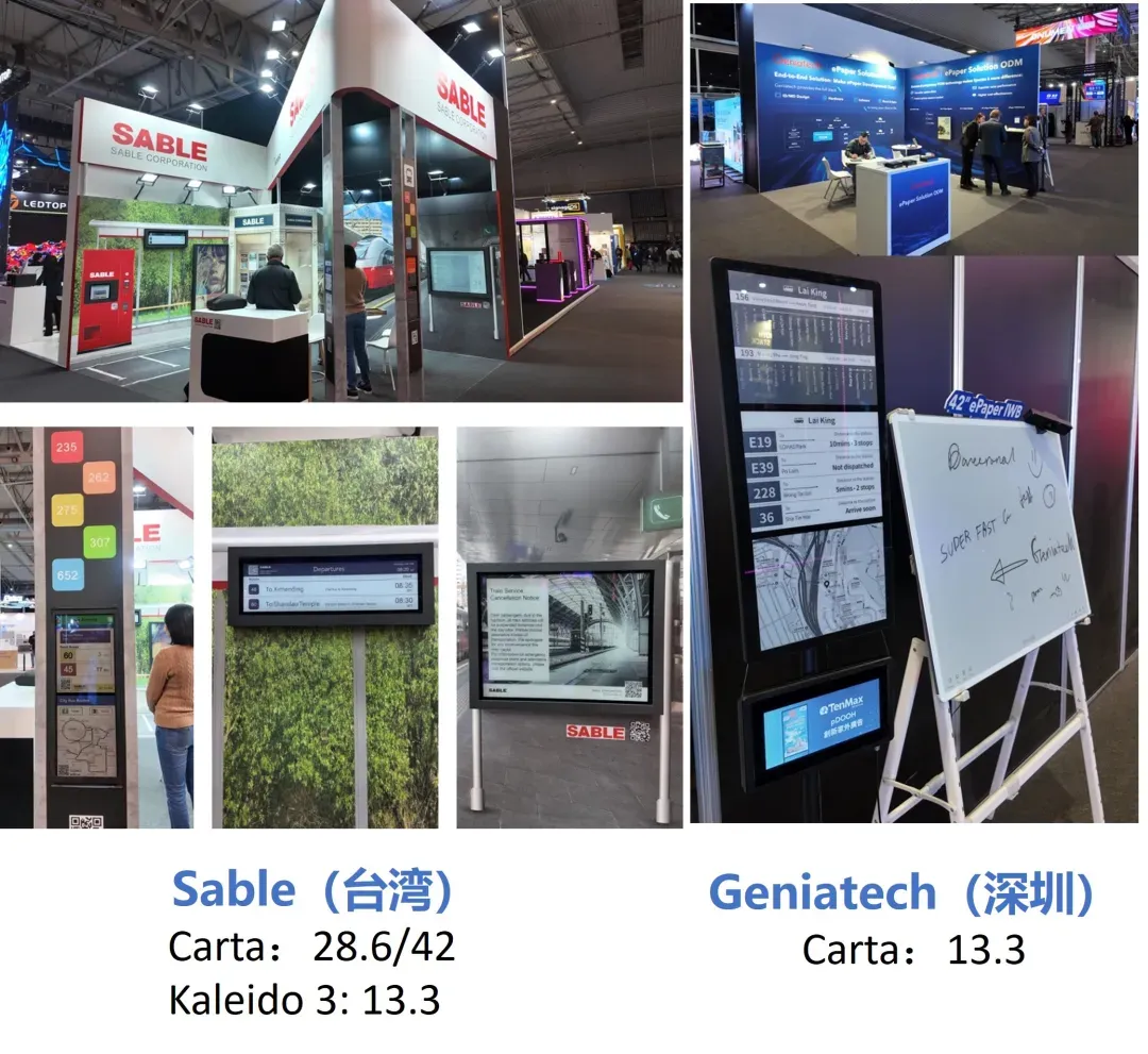 国际头部商显厂商均亮相系列大尺寸彩色电子纸商显设备。