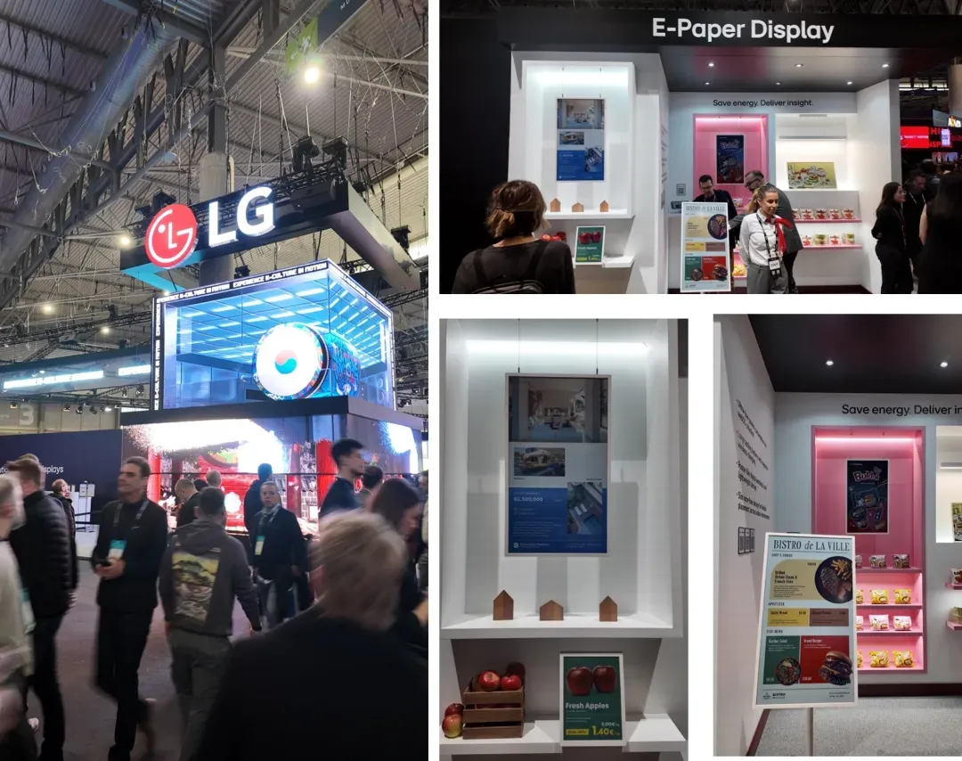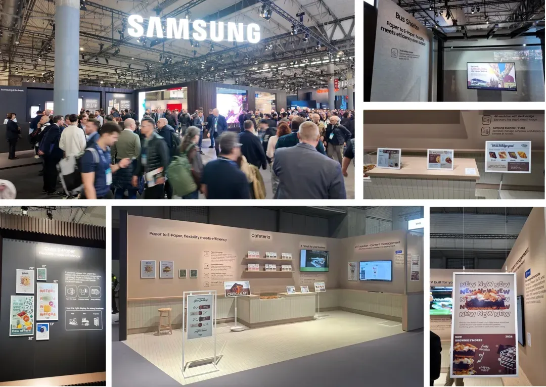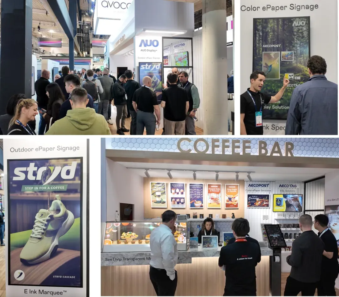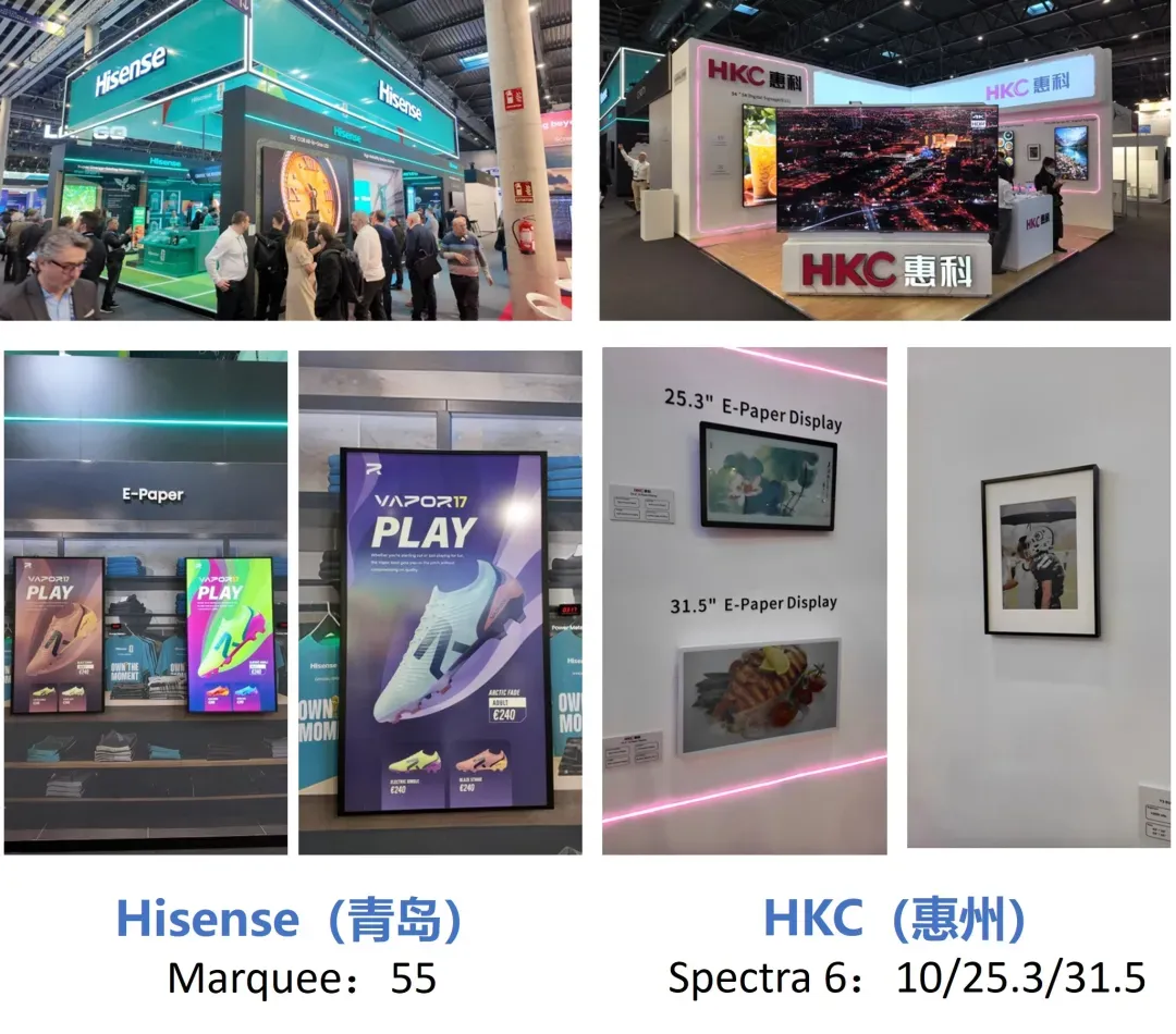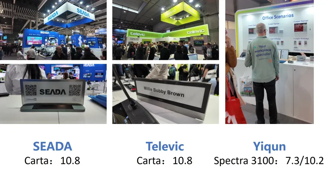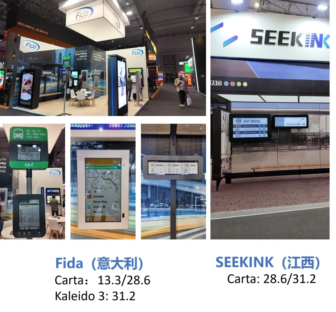 国际头部商显厂商均亮相系列大尺寸彩色电子纸商显设备。
