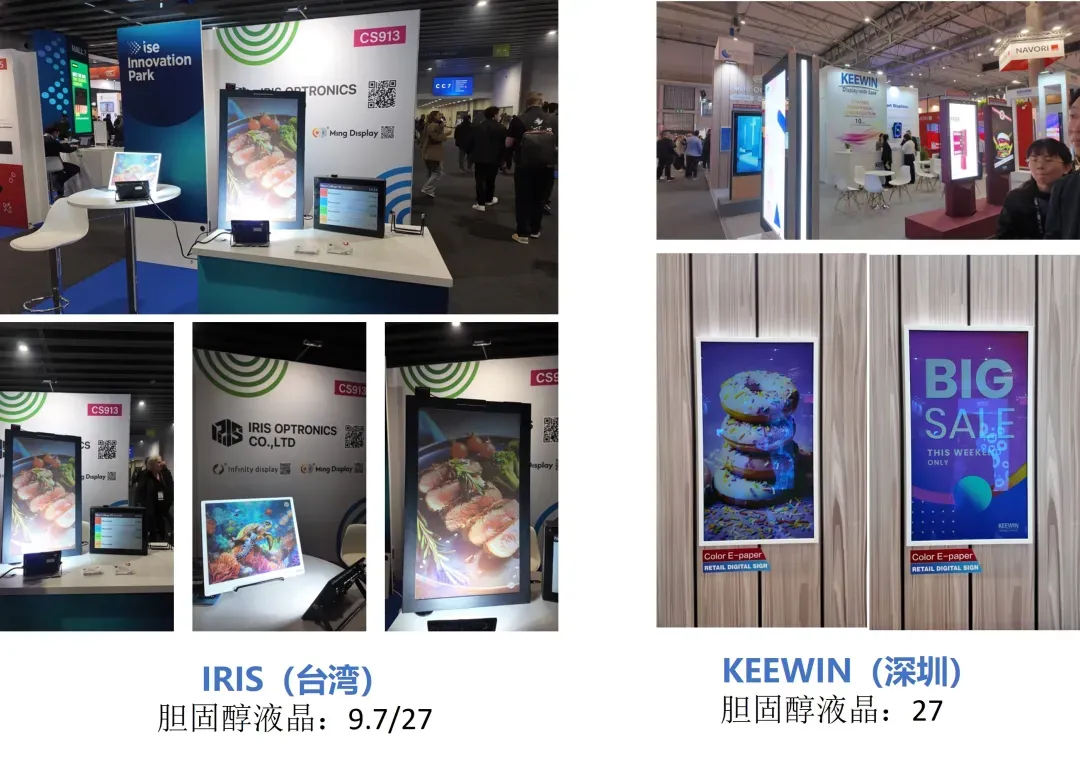 ISE2026 电子纸相关展商32家,其中E Ink电子纸产品展商30家占94%,胆固醇液晶2家(含虹彩科技)。